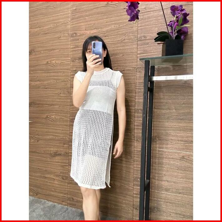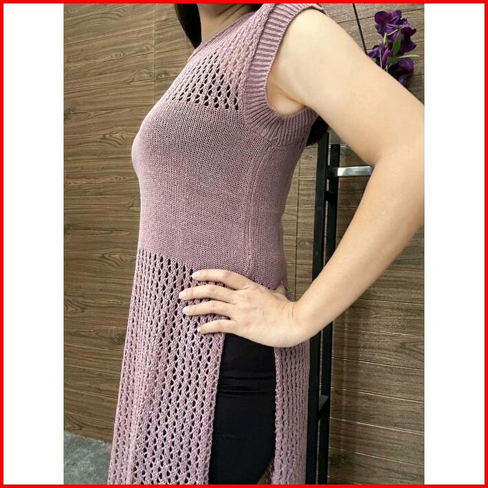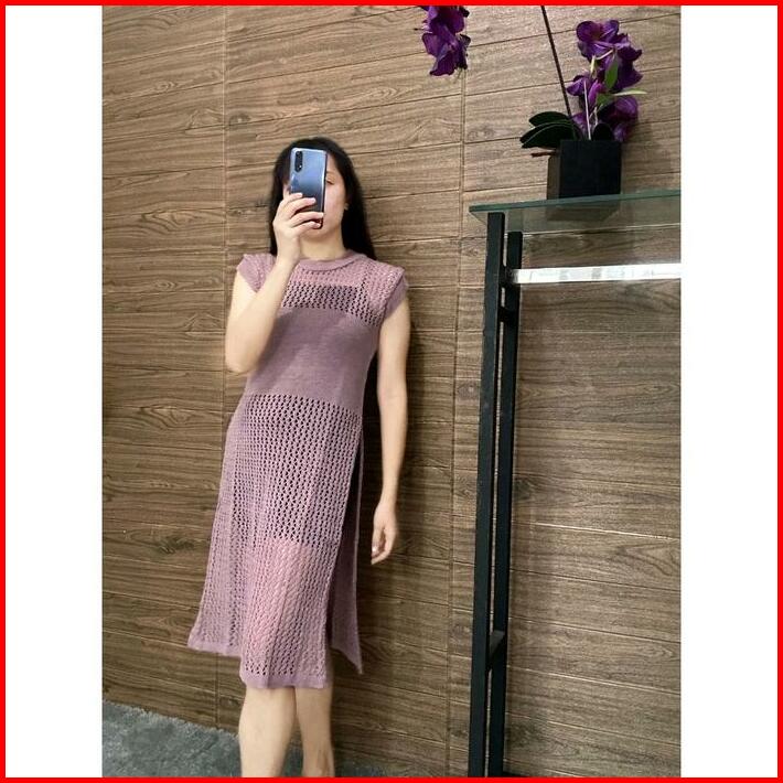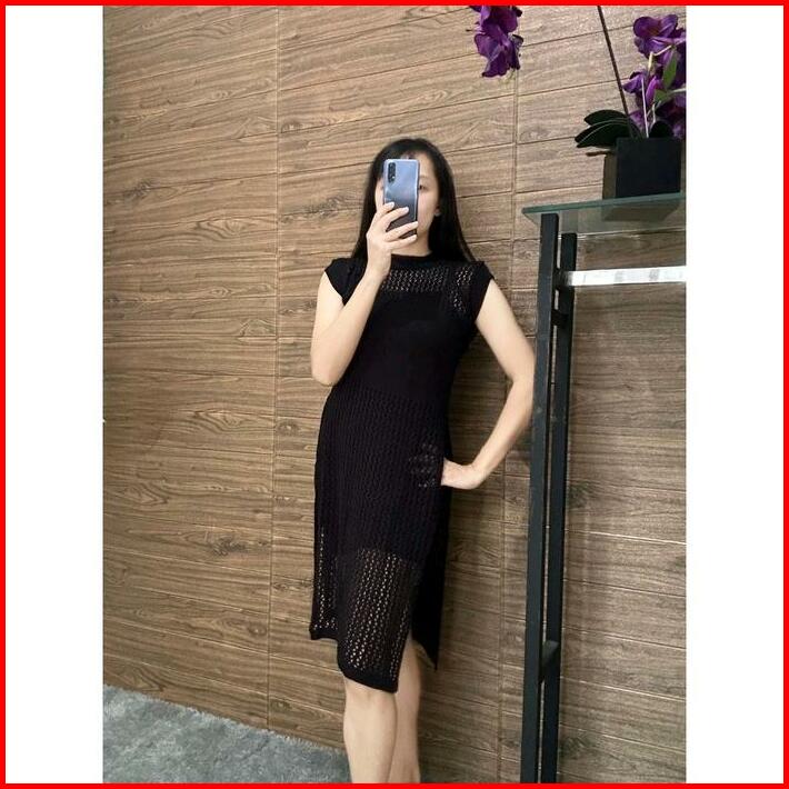 Ruby Tunik Dress Atasan Wanita Rajut Jaring Belah Samping Pinggir Baju Panjang Casual Mini Hitam Terusan Midi