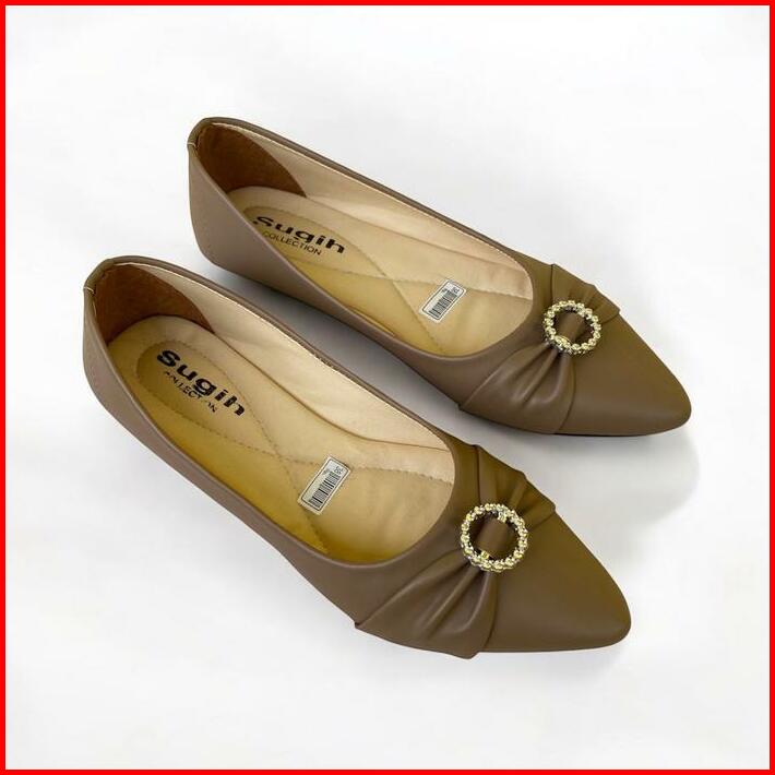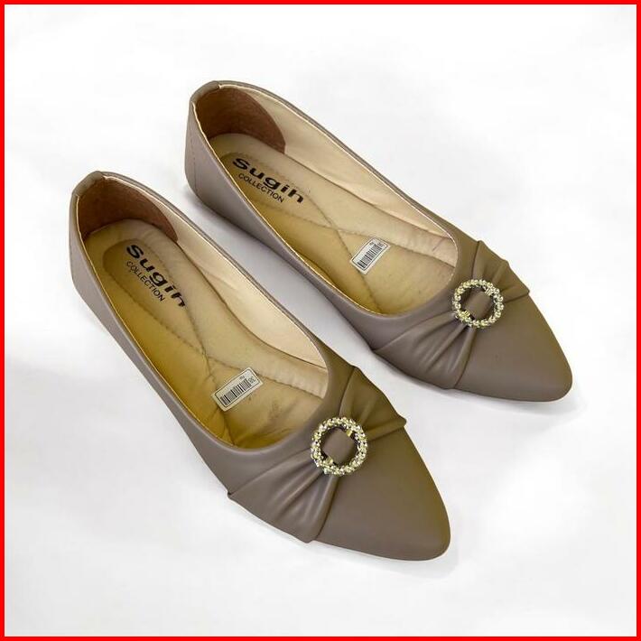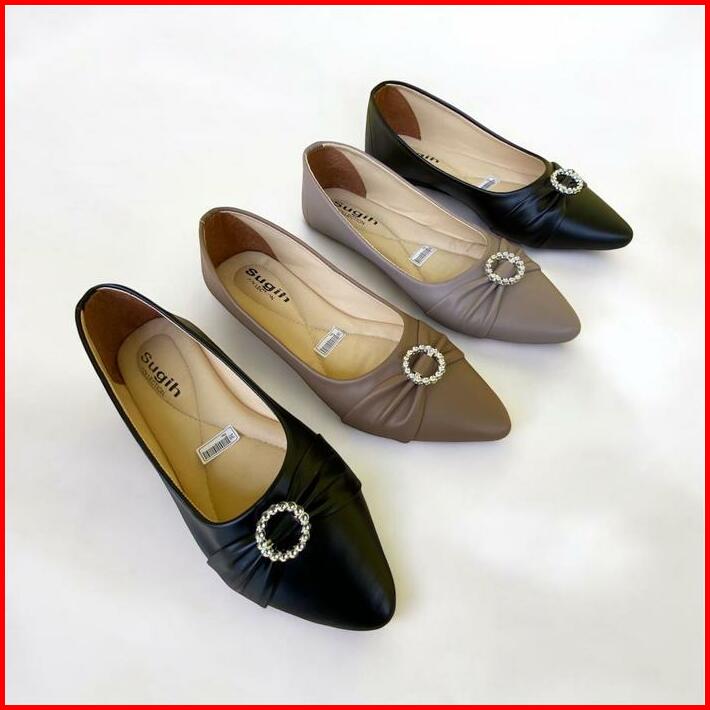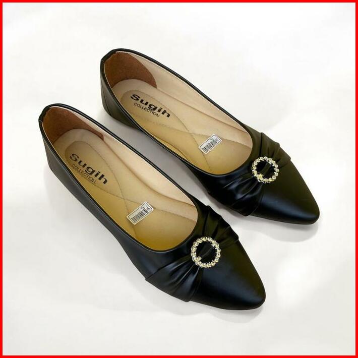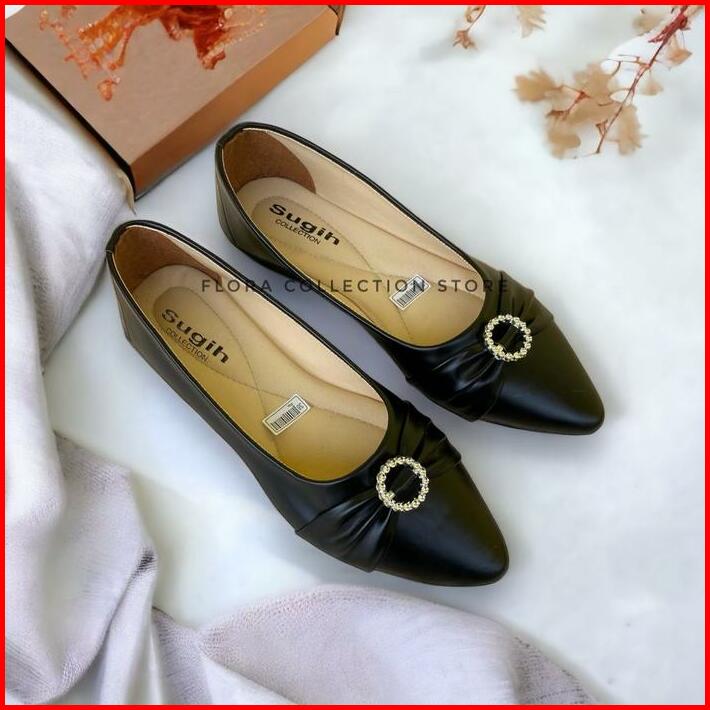 Sepatu Flat Shoes Wanita Flora Lolisa Non Slip Sol Karet Kerja Cewek Hitam