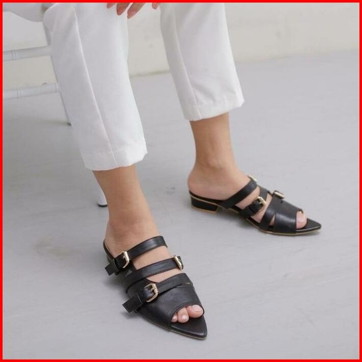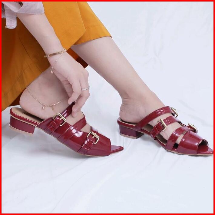Adeka Corner Hellen Wanita Model Gesper Square Toe 3cm Bahan Sintetis Premium Karet Shoes Sandal Antiselip Dasar Sendal