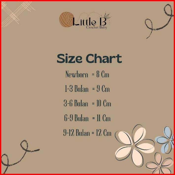 NEWBORN (8CM), 1-3 BULAN (9CM), 3-6 BULAN (10CM), 6-9 BULAN (11CM), 9-12 BULAN (12CM)