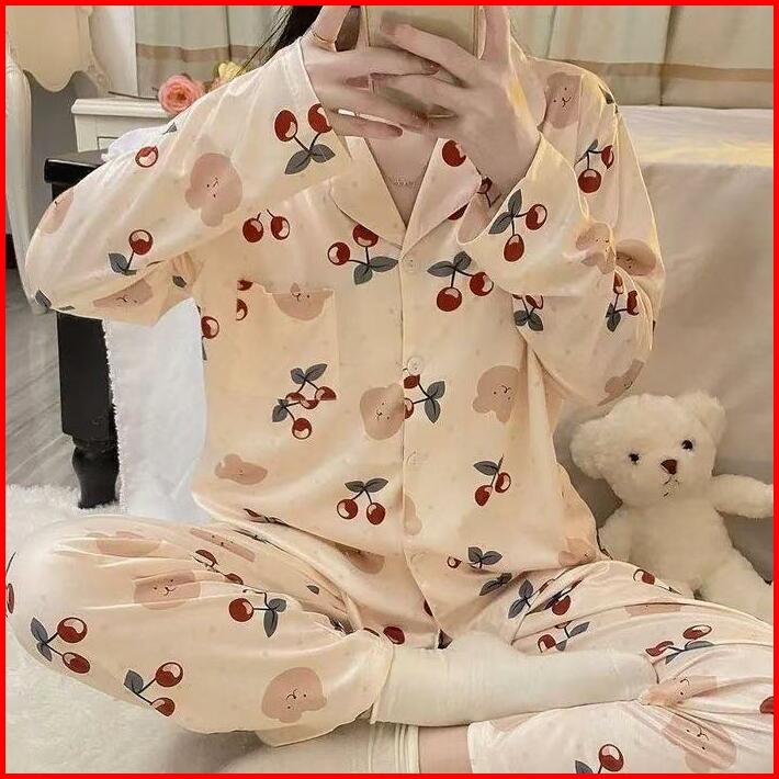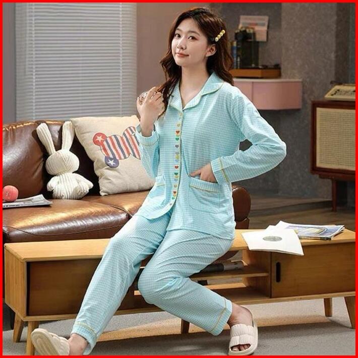Vivifashionsby Baju Tidur Nyaman Piyama Wanita Set Pajamas Baju Piyama Kancing Dewasa Wanita Setelan Baju Babydoll Celan