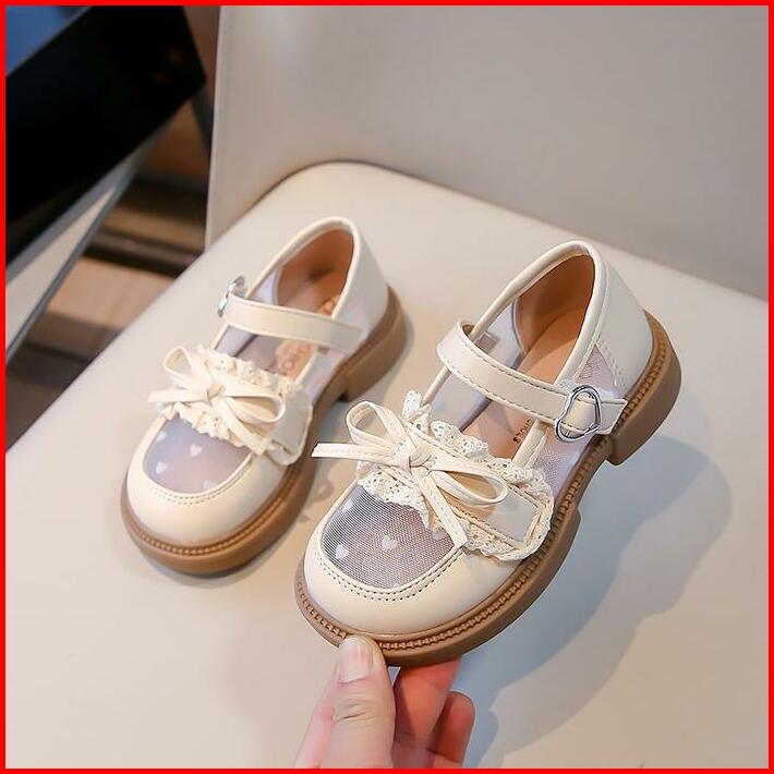 Sepatu Datar Kulit Bayi Perempuan Ikatan Simpul Gaya Korea Sepatu Anak Sol Lembut Nyaman Renda Bordir Hati Penuh Kasih 2