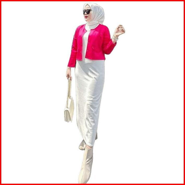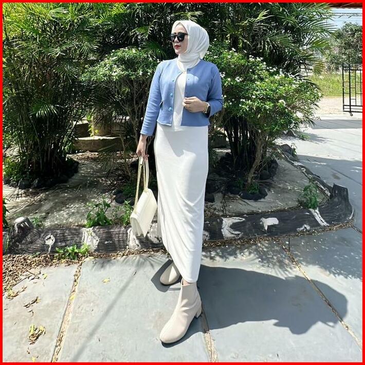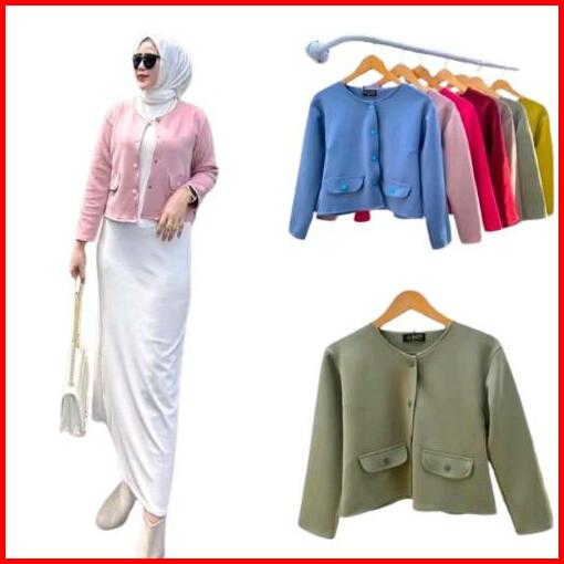 Set Knit Iner Blazer Crop Scuba Kancing Wanita Panjang Outer Setelan Jumpsuit Atasan Cardigan Fit Bawahan Celana Set Bla