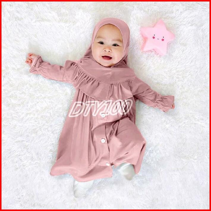 Dty100 Gamis Bayi Perempuan Newborn Bilqis 0-4 Bulan 6-12 Bulan 12-18 Bulan Baju Muslim Anak Free Hijab Krudung