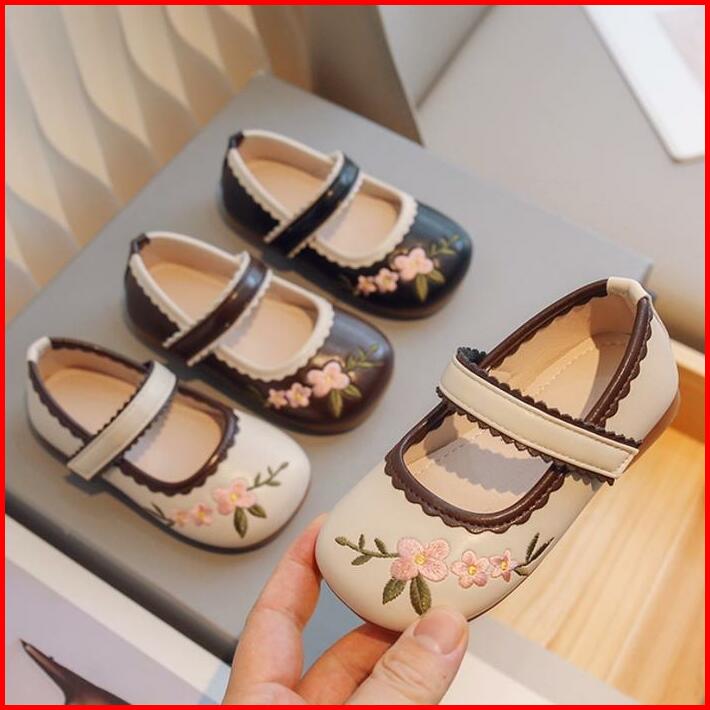 Gaya Korea Manis Bayi Perempuan Ruffle Sepatu Flat Kulit Bordir Bunga Sol Lembut Anti Licin Sepatu Anak 2-16 Tahun Kaki