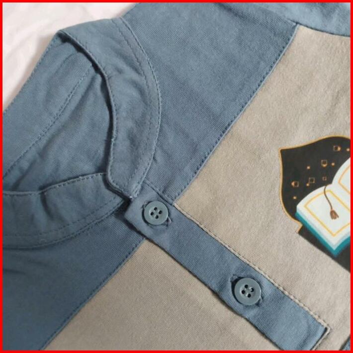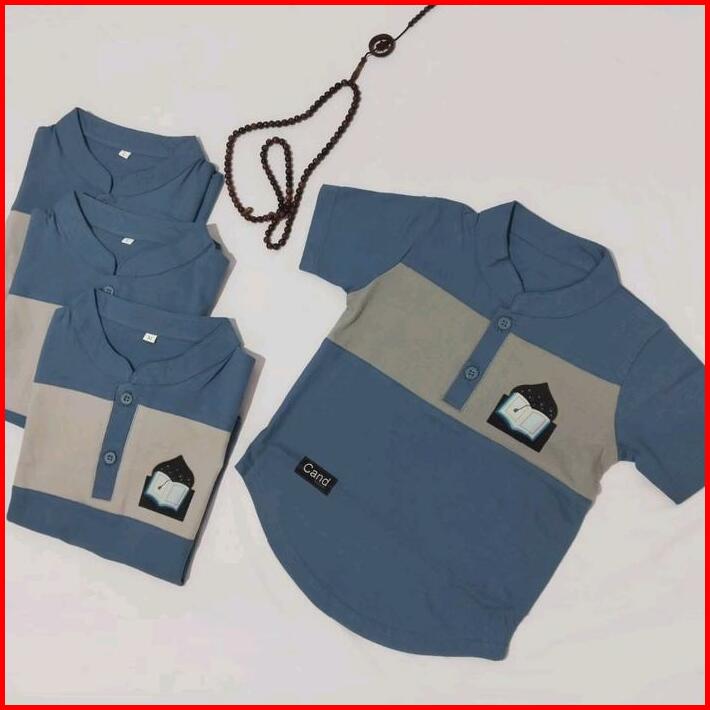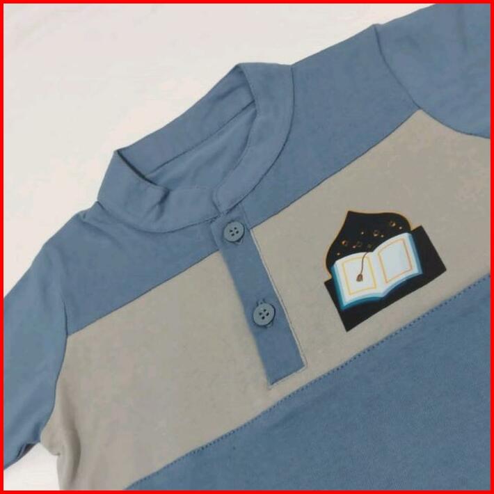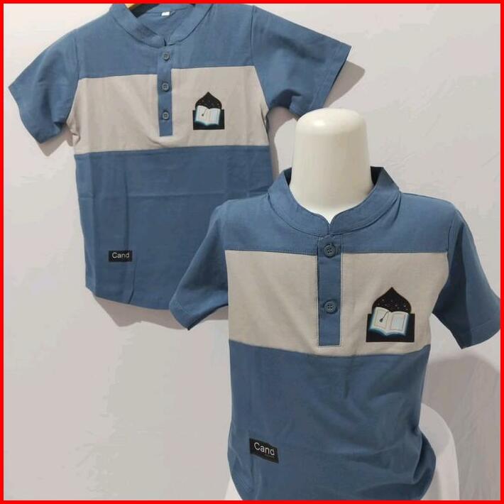 Baju Koko Anak Warna Denim Mix Misty Usia 1-10 Tahun Warna Denim Bahan Kaos Cotton Combad 24s Muslim Combed Katun Pendek