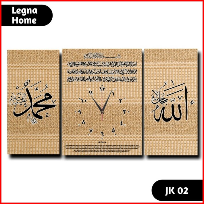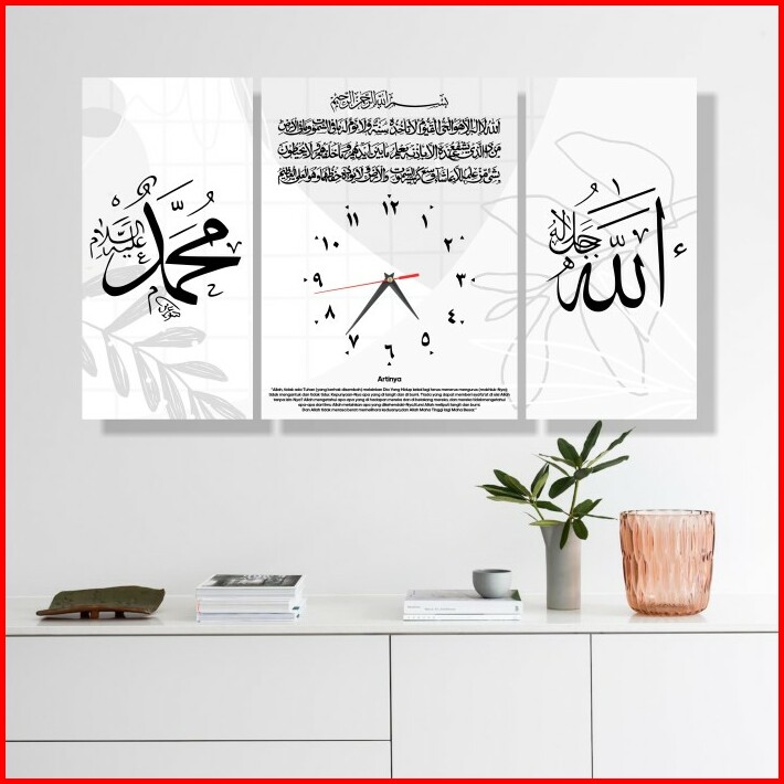 Hiasan Dekorasi Jam Dinding Kaligrafi Ayat Kursi Lafadz Allah Muhammad