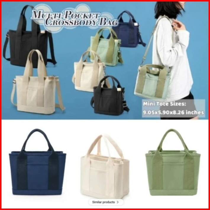 Multi Pocket Crossbody Canvas Bag Canvas Tote Bag Tas Fashion Korea
