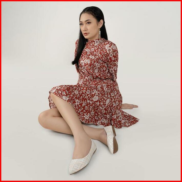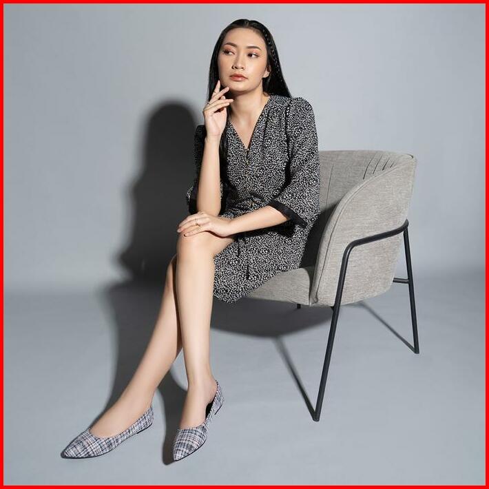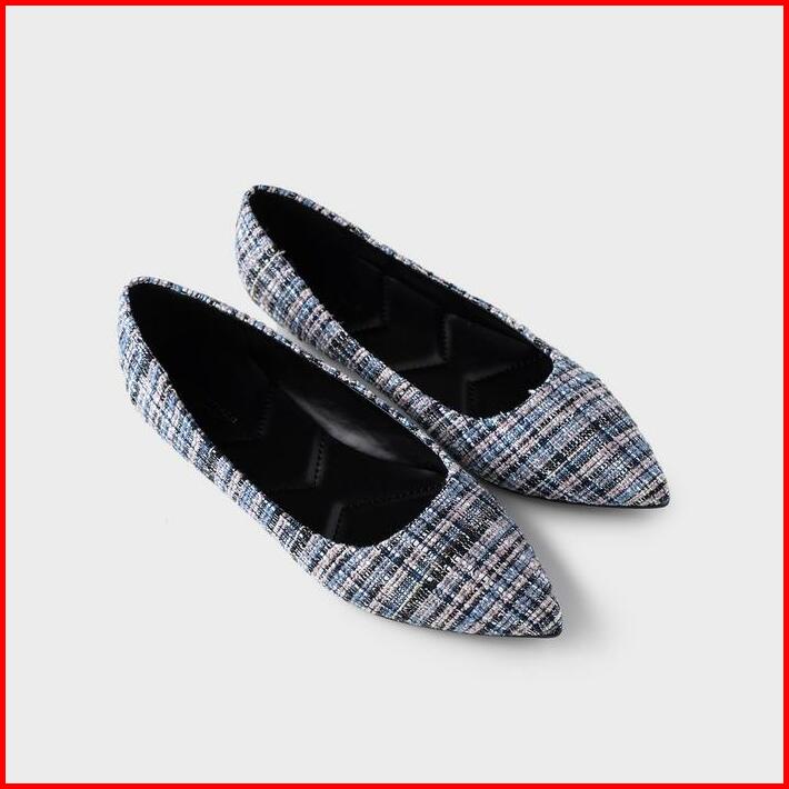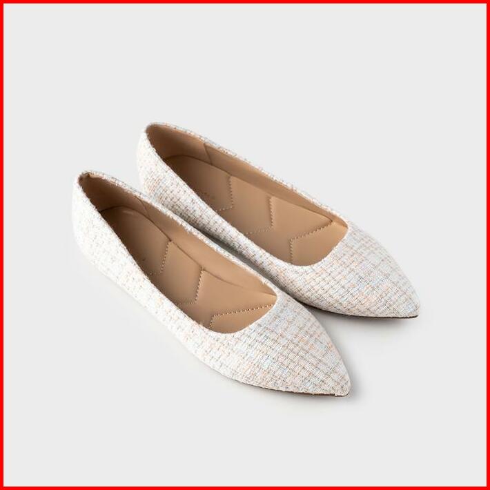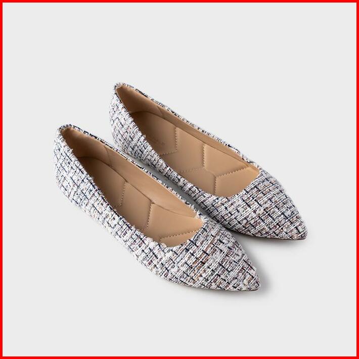Flat Shoes Wanita Nichi Urban Co Sepatu Flat Kerja Hitam Korean Style Bahan Tweed