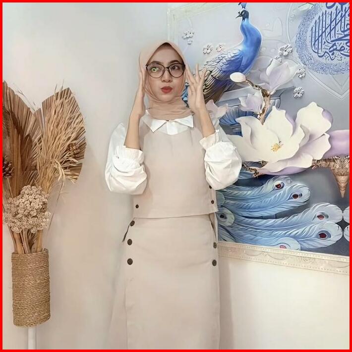 3hearts Oneset Rok Span Kancing Kanan Kiri Dan Rompi Cargo Semi Jeans Korean Style Casual Crop