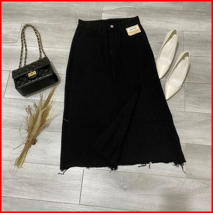 Herchoice Jm009 Rok Jeans Wanita Bahan Nyaman Panjang Hitam