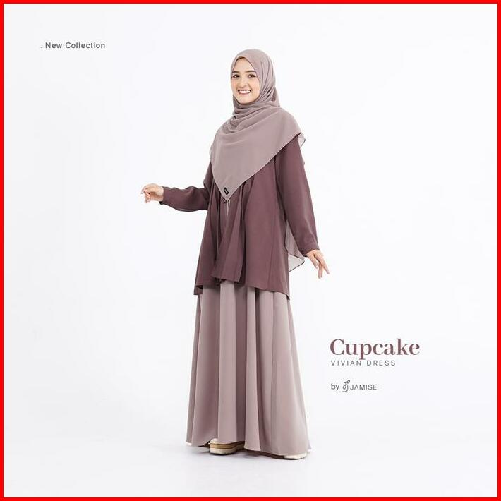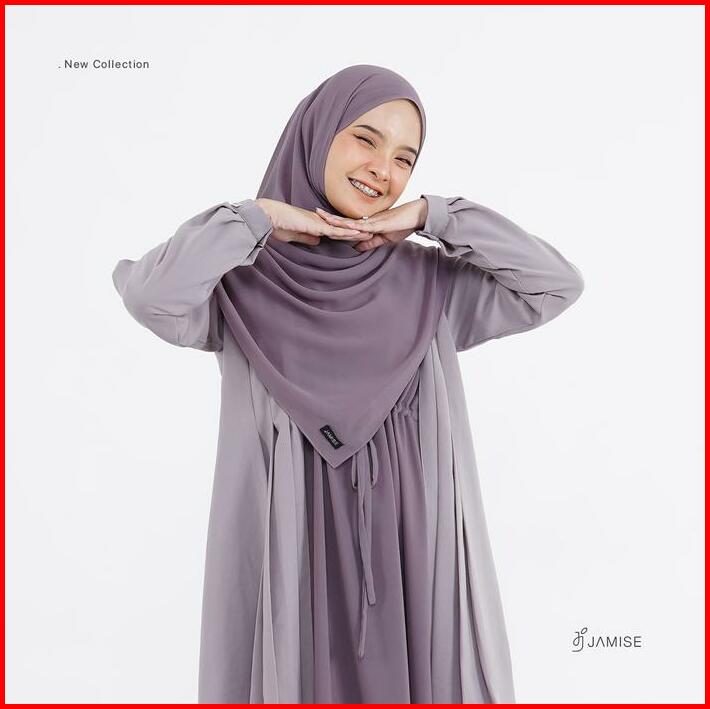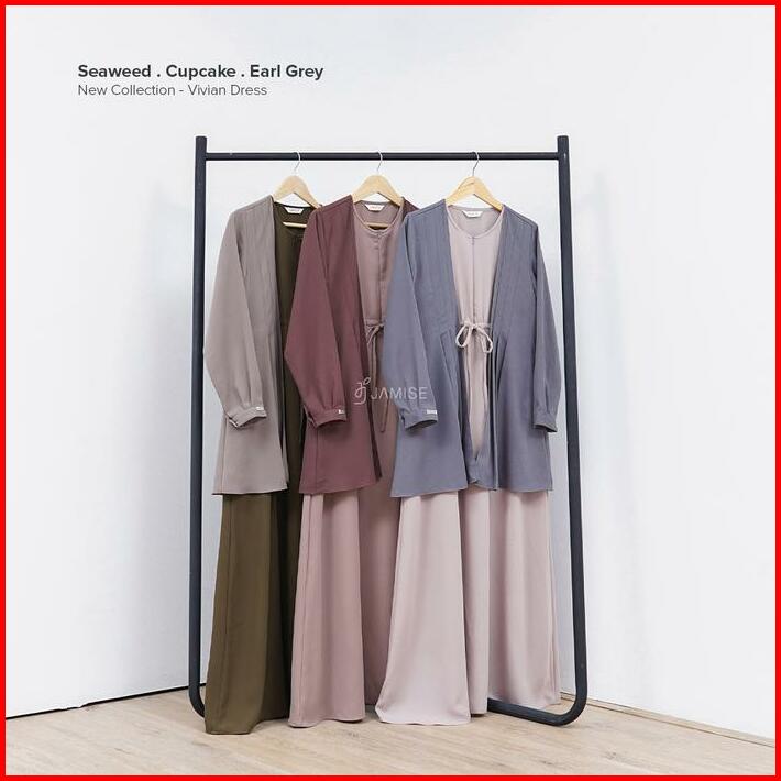 Vivian Dress Gamis Panjang Basic Simple Variasi Plus Outer Dua Warna Serut Layer Syari Wanita Muslimah By Jamise Nyaman
