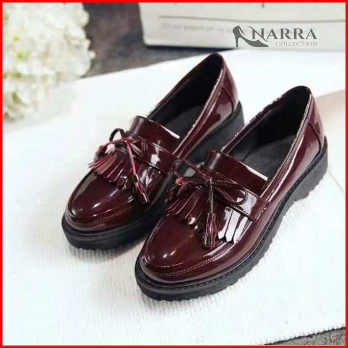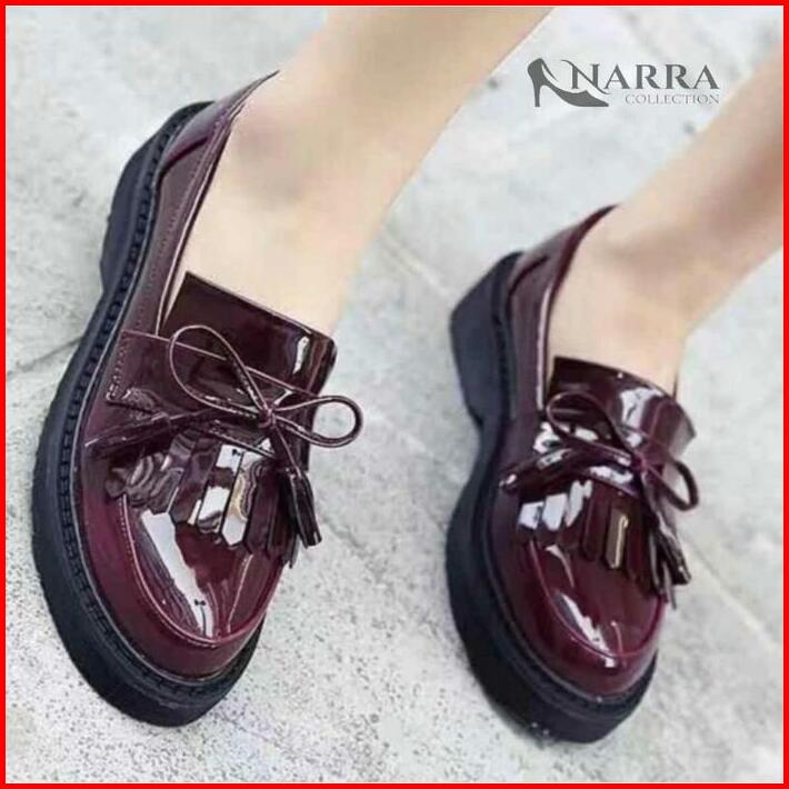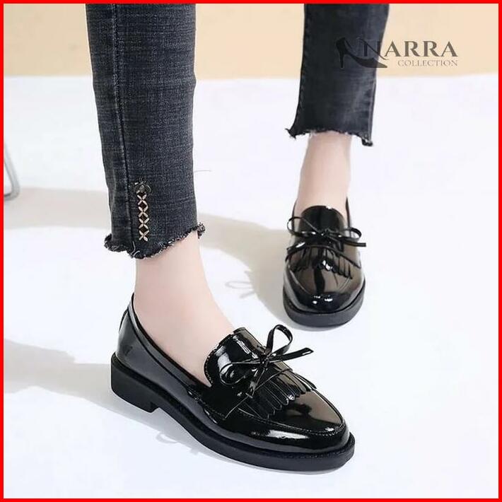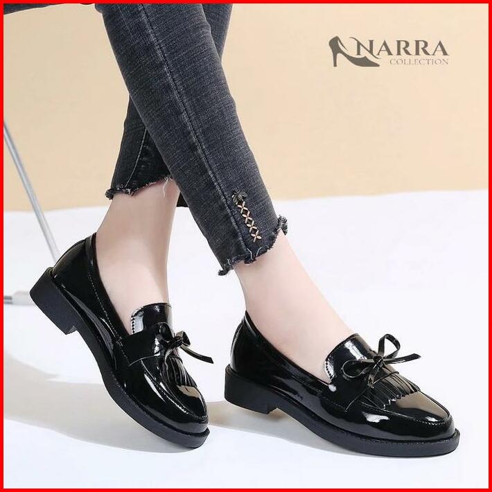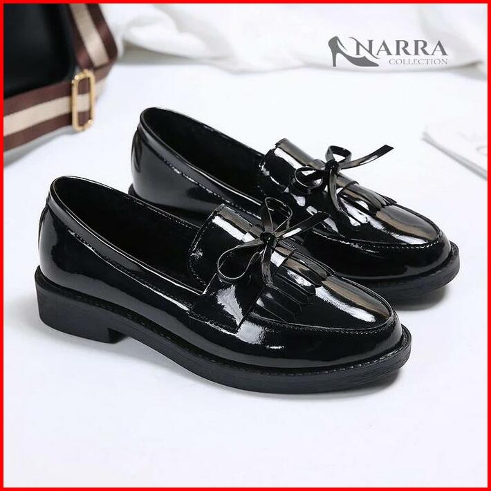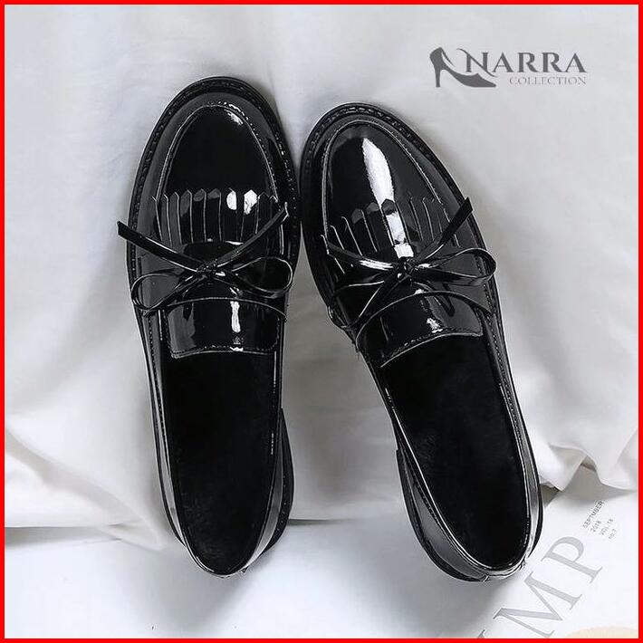 Sepatu Dockmart Wanita Pita Glosy Musim Panas Hitam Shoes Ringan Korean Flat Antiselip Kerja