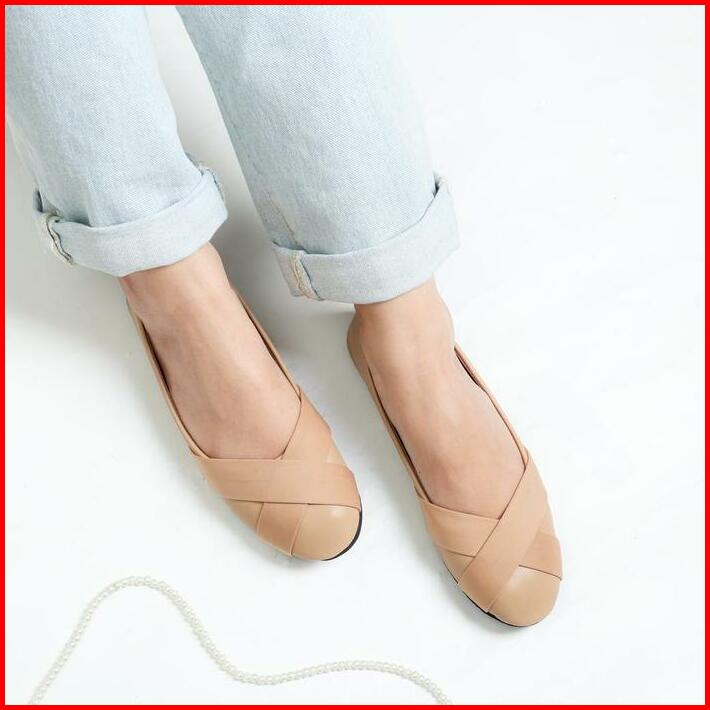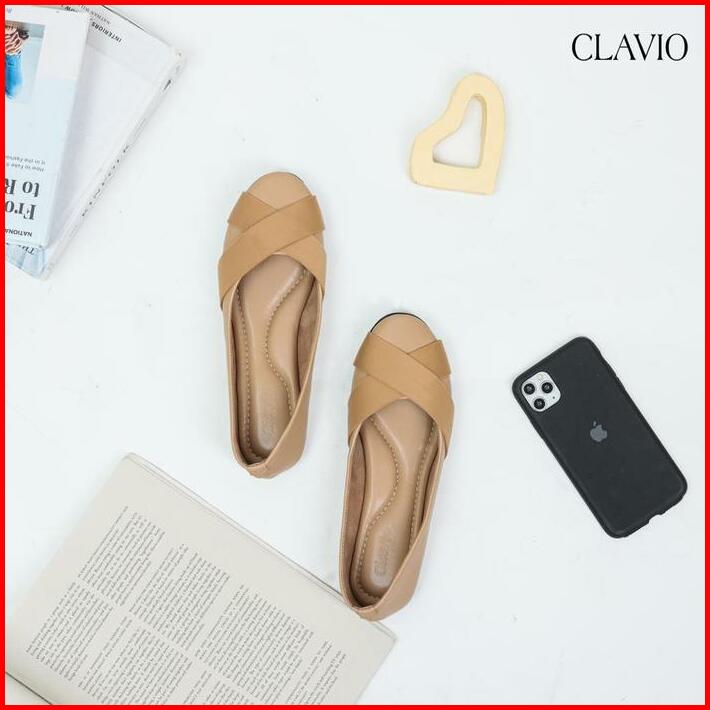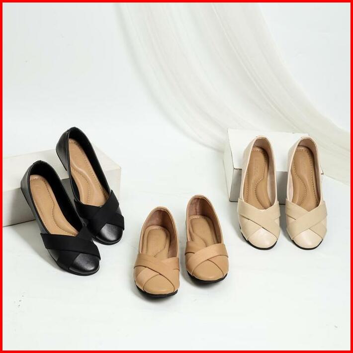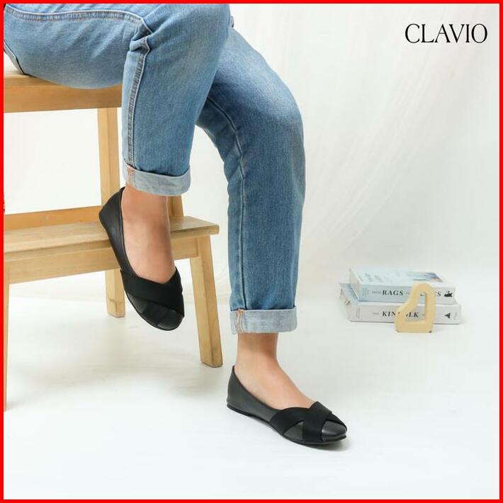 Clavio Keisha Flatshoes Wanita Tanpa Hak Black Shoes Flat Kerja Hitam