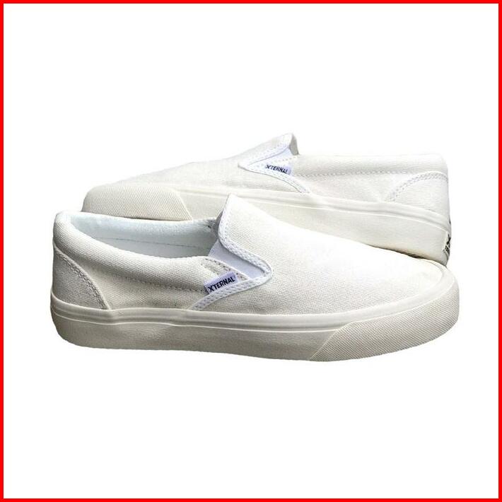Sepatu Slip On Pria Wanita Holy Xternalstepsure Offwhite Wb Canvas Kasual Flat Shoes Black