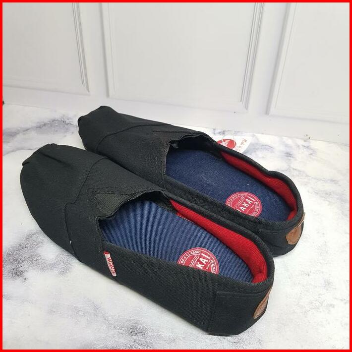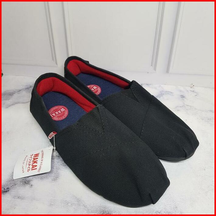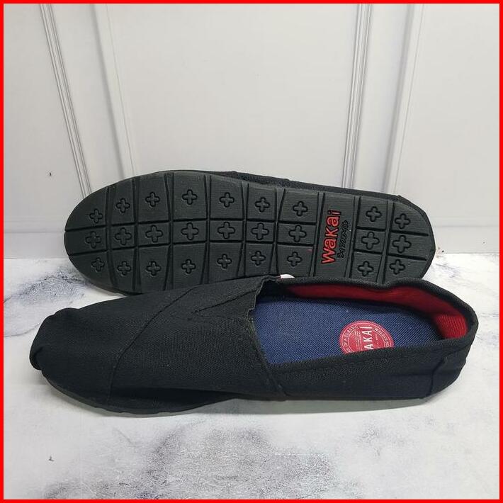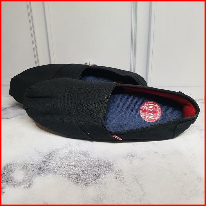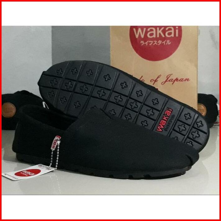 Sepatu Wakai Black Premium Shoes Sneakers Hitam Pria Wanita Flat