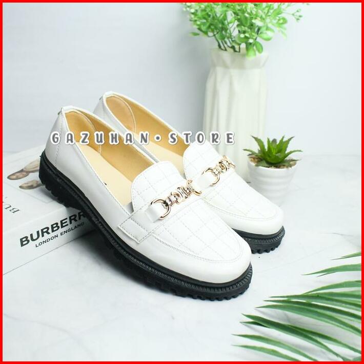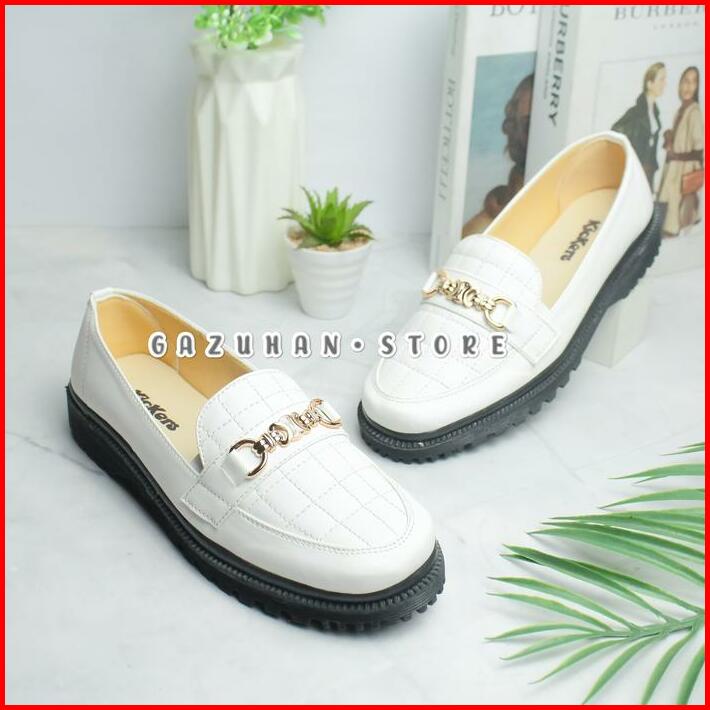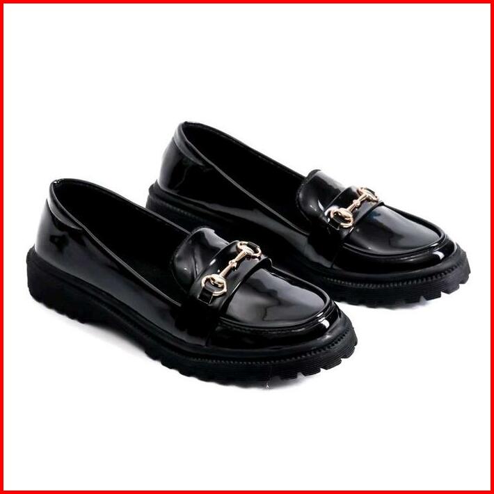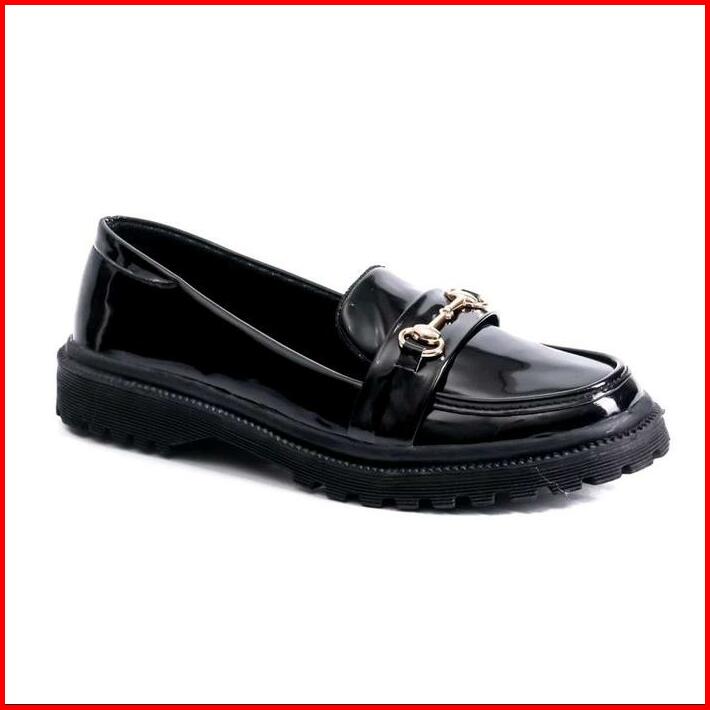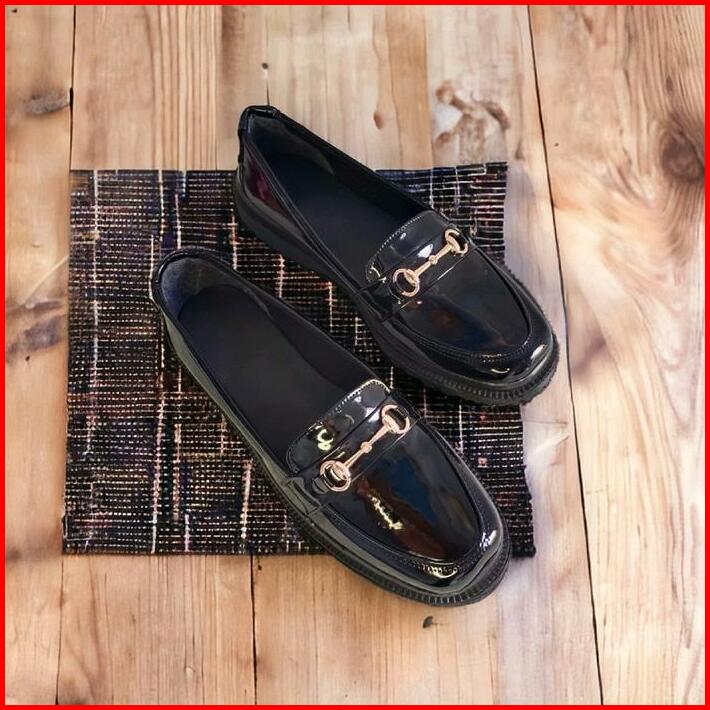 Sepatu Wanita Docmart Slip On Kulit Glossy Kekinian Flat Shoes Kasual Cewek Kerja Hitam Karet
