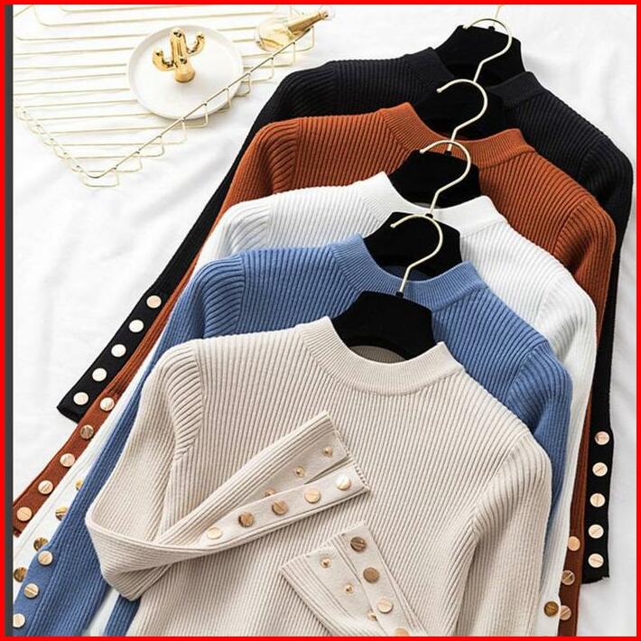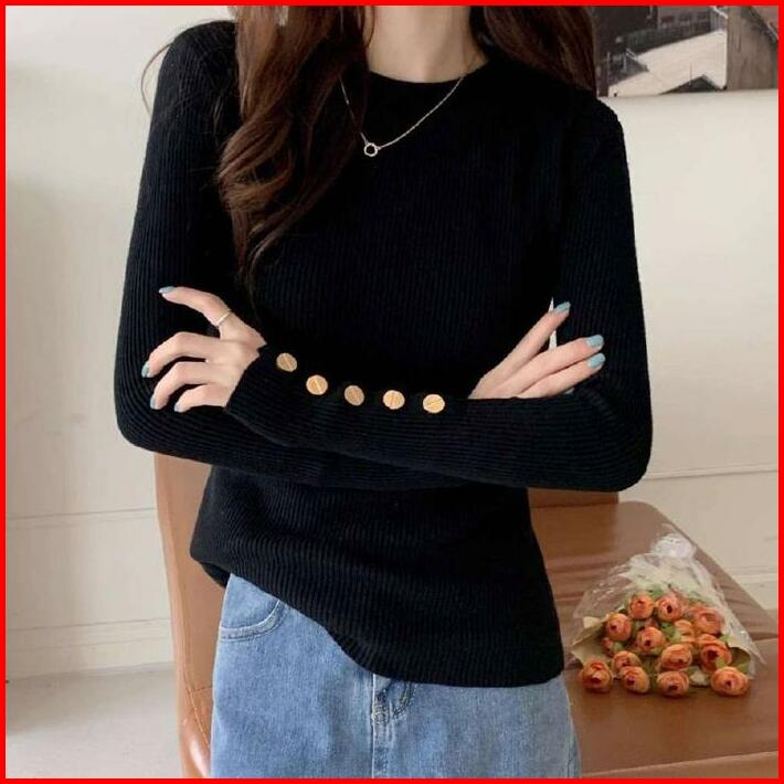 Gloryshop88 Atasan Knit Kancing Premium Inner Inara Dalaman Muslim Manset Lengan Panjang Button Knit Baju Rajut Premium
