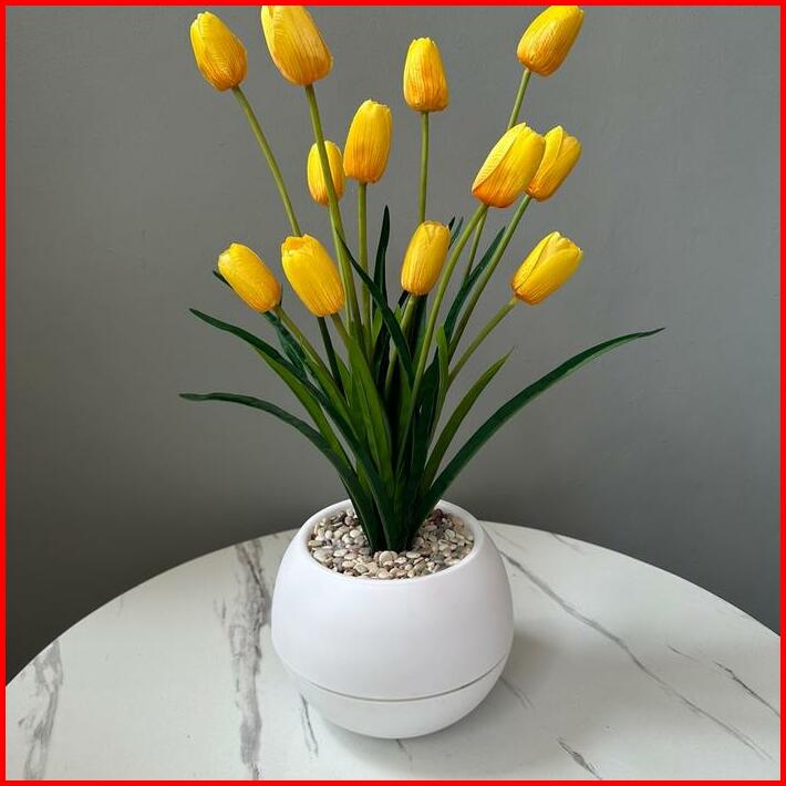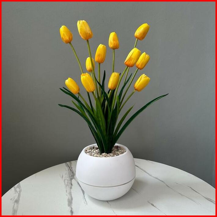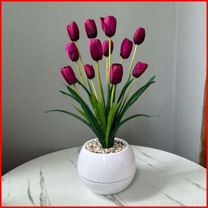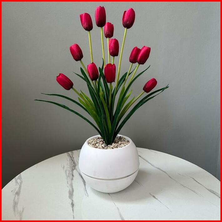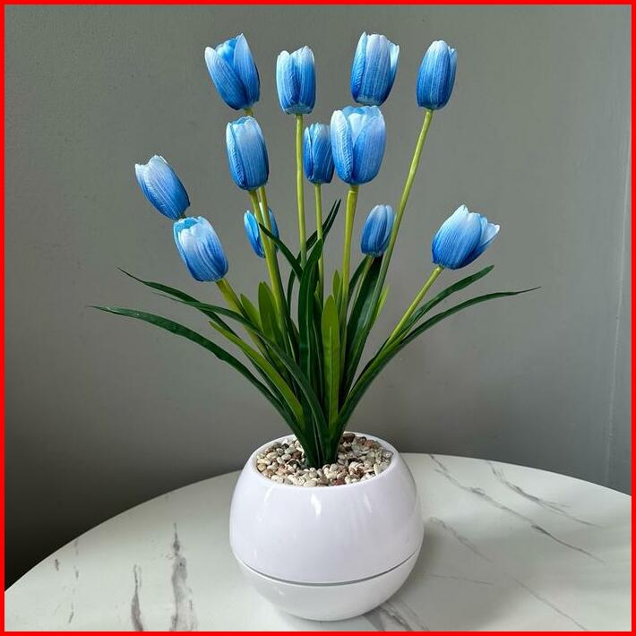 Rangkaian Bunga Palsu Tulip Vas Bola Plastik Biru Putih