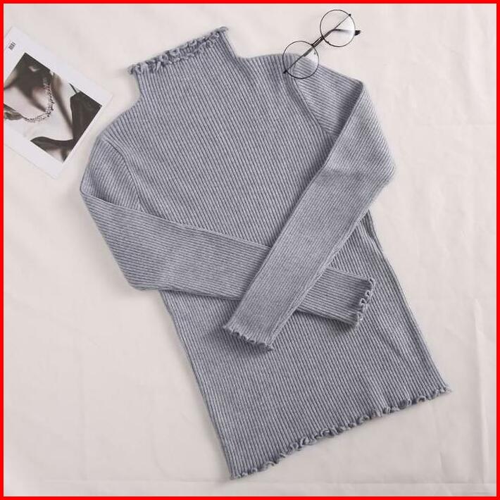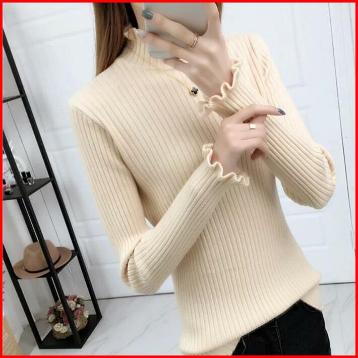 Sweater Turtleneck Rajut Kerah Tinggi Rajut Wanita Atasan Kriwil Crew Neck Baju Fit Knitwear Panjang Basic Cardigan