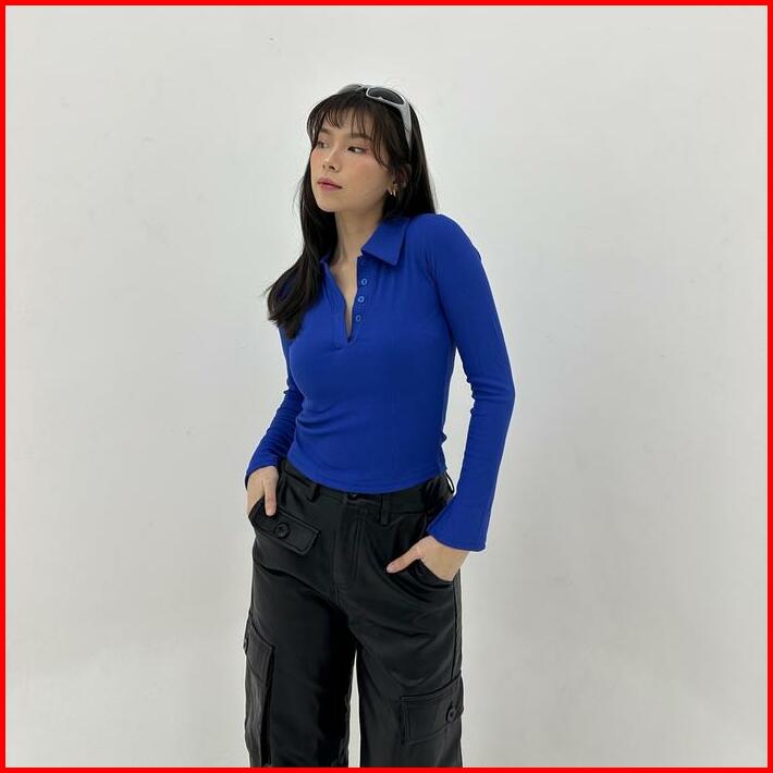 Kimberly Polo Top Polo Top Knitwear Atasan Rajut Wanita Atasa Kerah Rajut Wanita Baju Lengan Panjang Rajut Rib By Dnaclo
