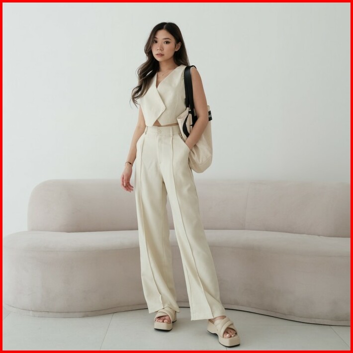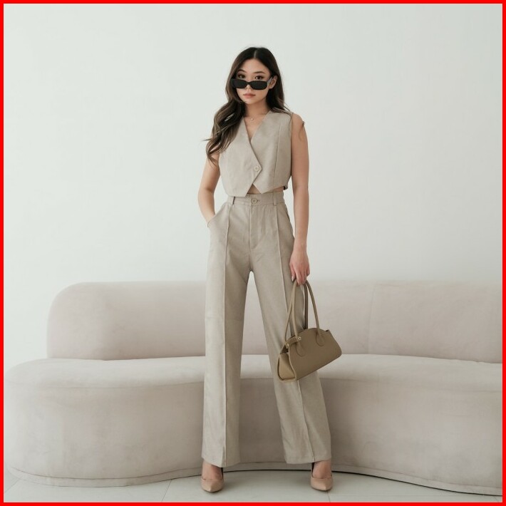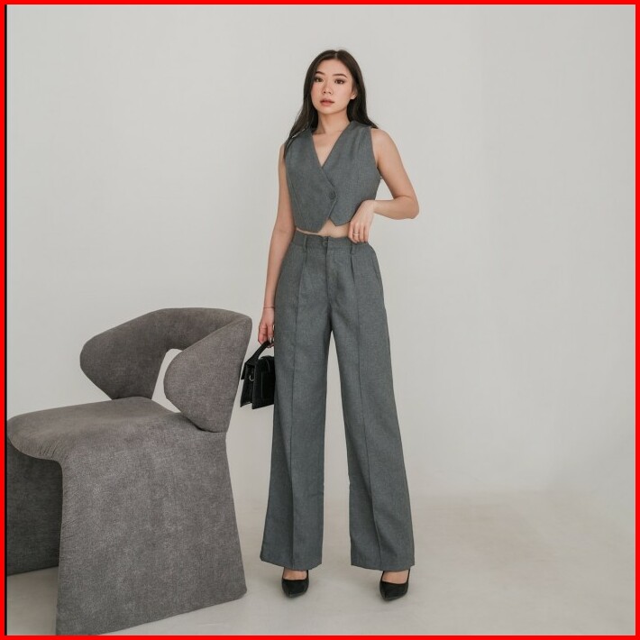 Khloe Vest Set Setelan Wanita Baju Set Wanita Rompi Wanita