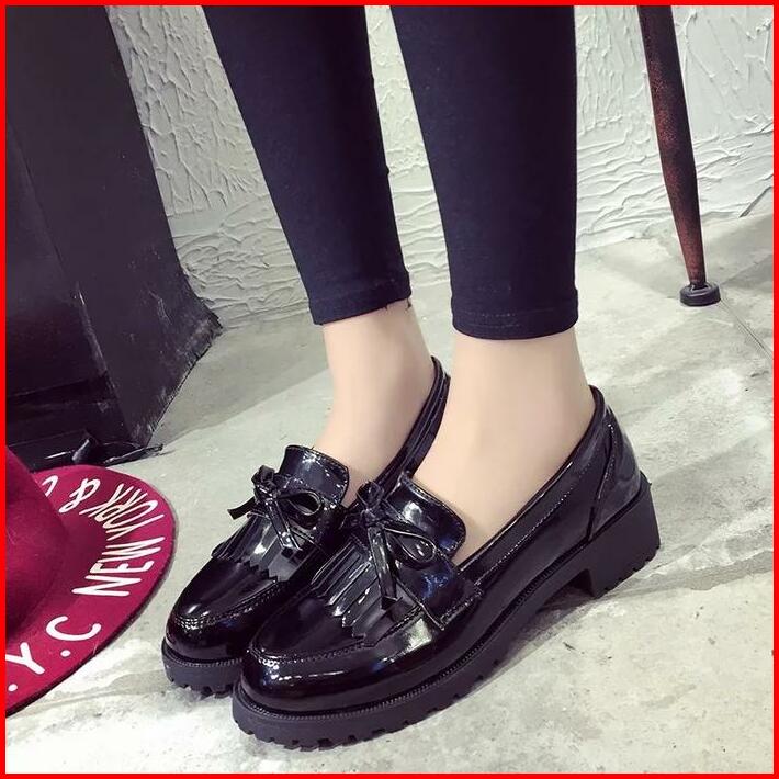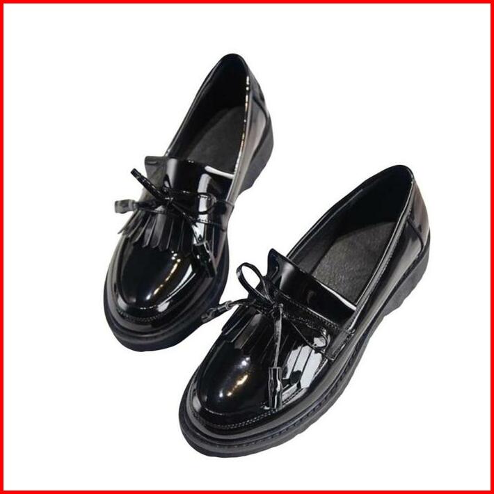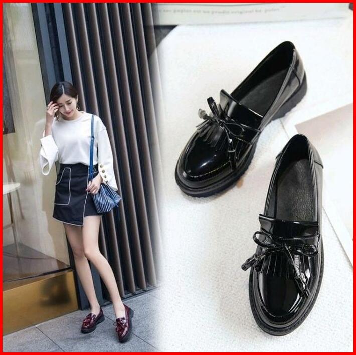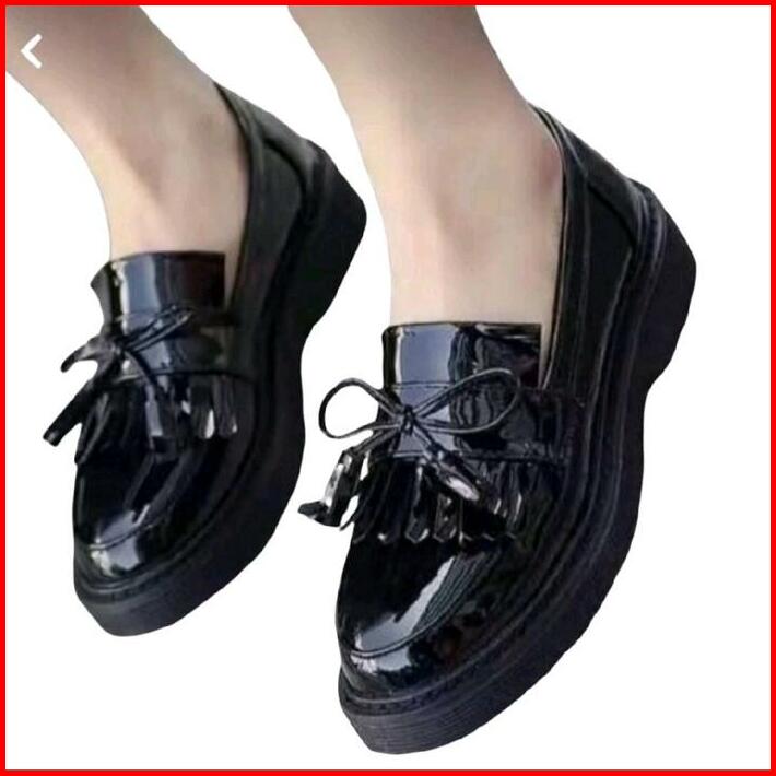Sepatu Docmart Wanita Lala Kulit Sintetis Glosy Hitam Sepatu Oxford Wanita Terlaris Sepatu Sekolah Cewek Kekinian Shoes