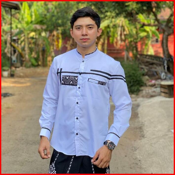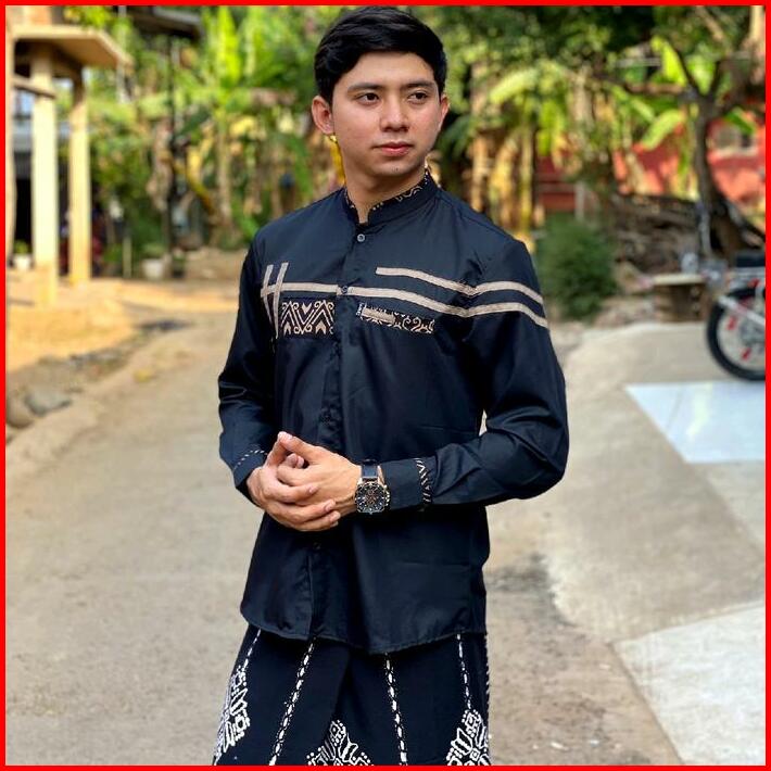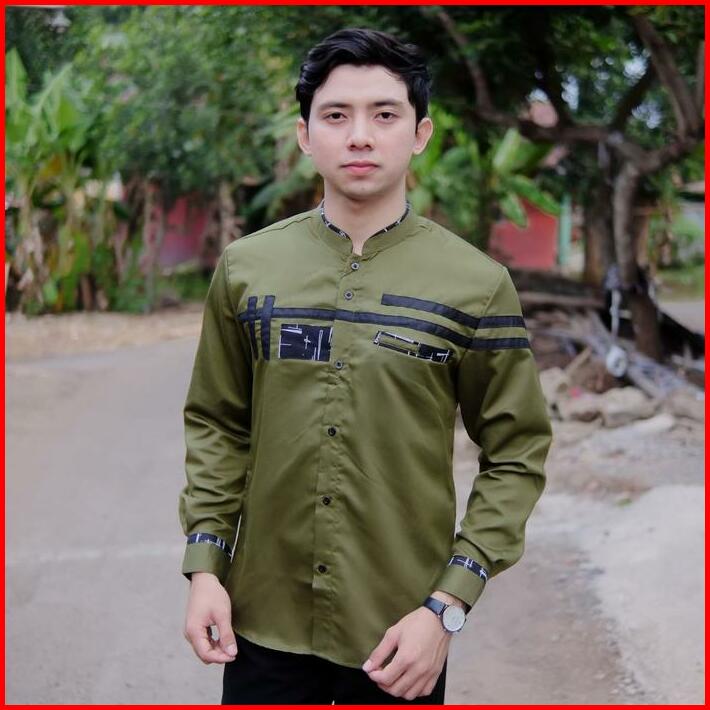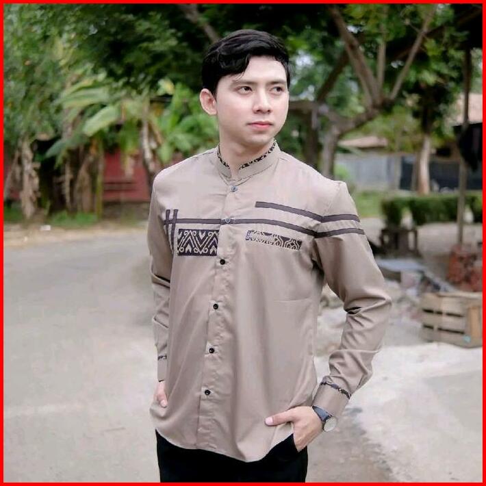 Baju Koko Lengan Panjang Dewasa Kombinasi Batik Coklat List Batik Kode561 Katun Muslim Toyobo Panjang Nyaman Pria Dewasa