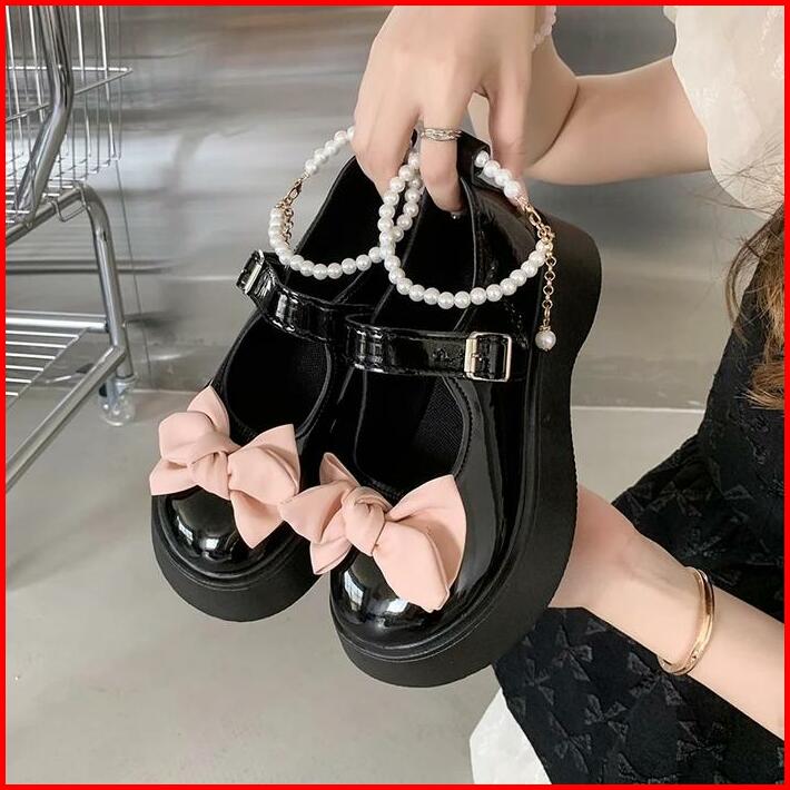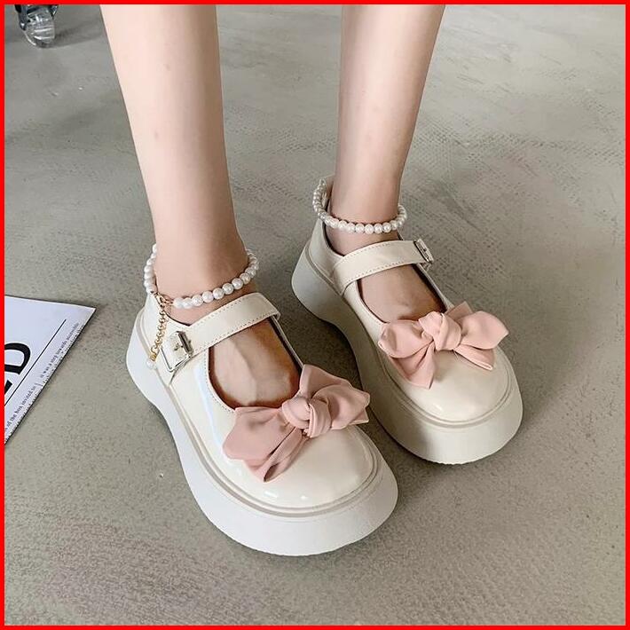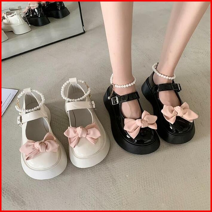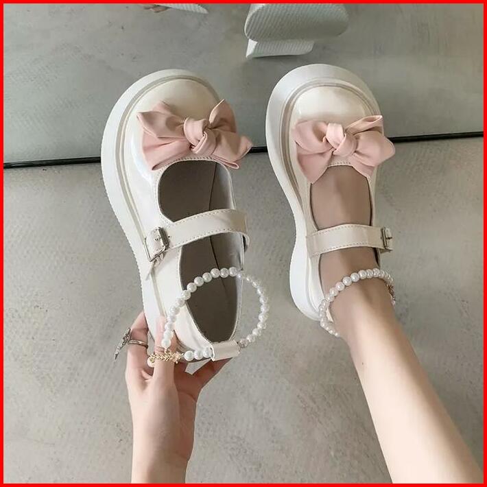 Platform Shoes Wanita Lolita Mary Jane Mutiara Pita Sailor Moon Flat