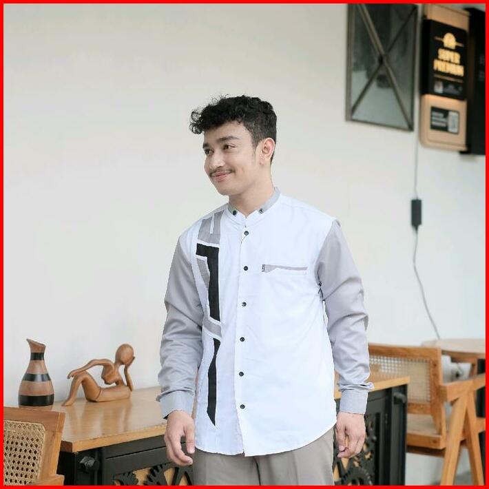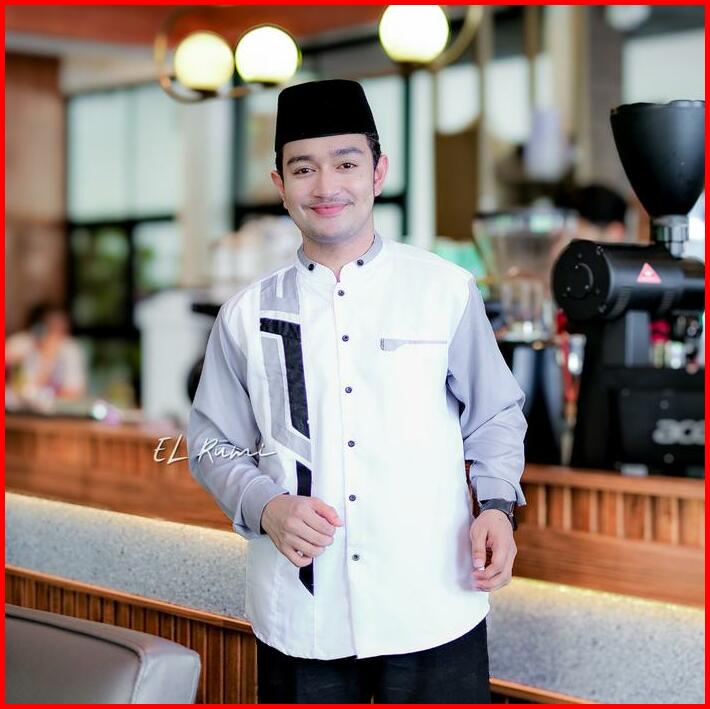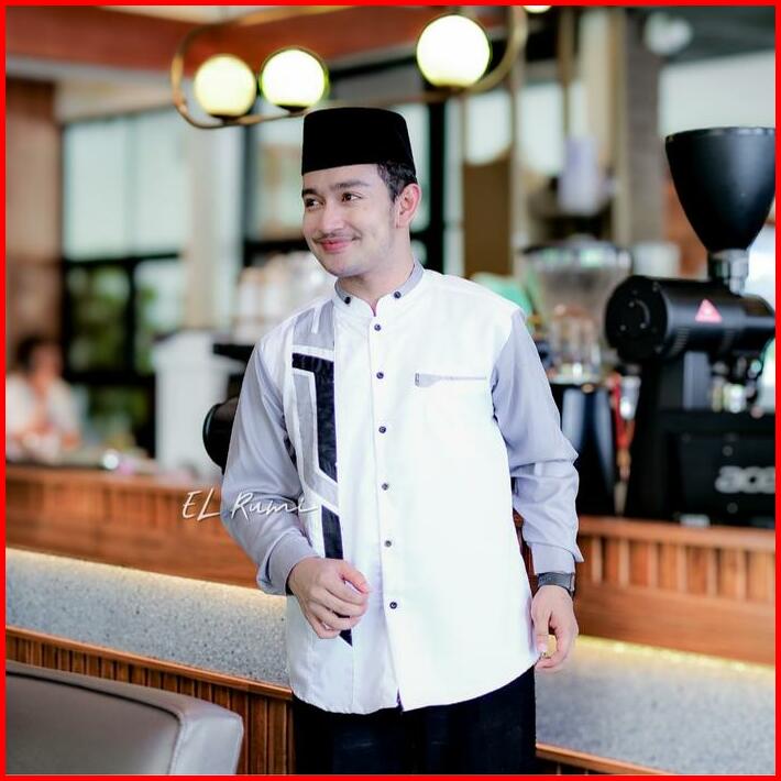 Baju Koko Pria Lengan Panjang Motif Sinergi Kain Katun El Rumi Shop