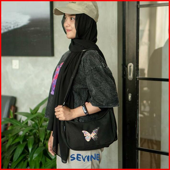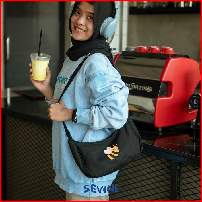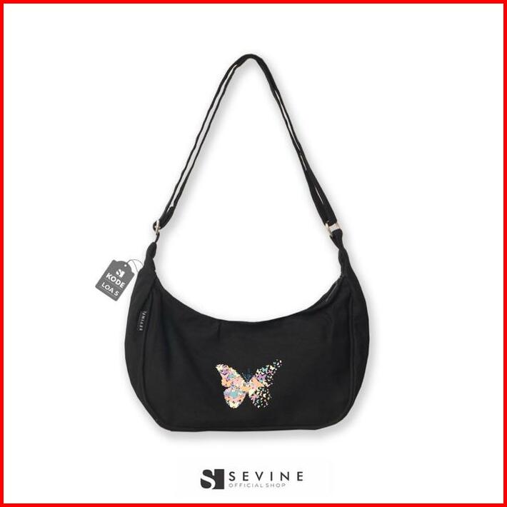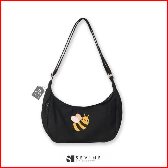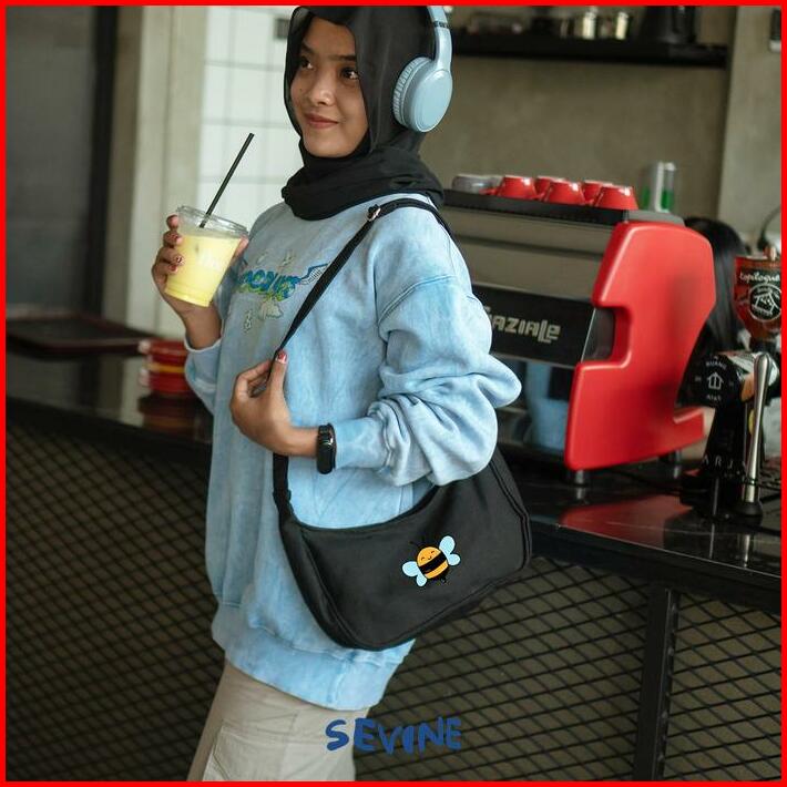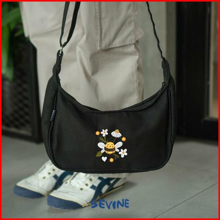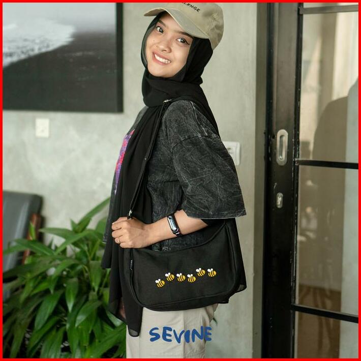 Sevine Louis Sling Bag Tas Selempang Wanita Tas Wanita Sekolah Kanvas Hitam Resleting Shoulder Bag Hand Bag