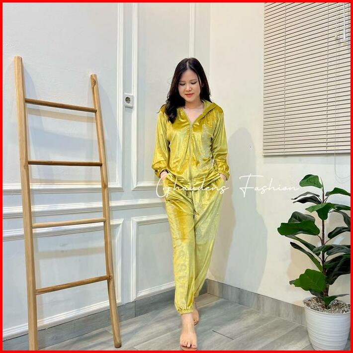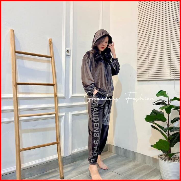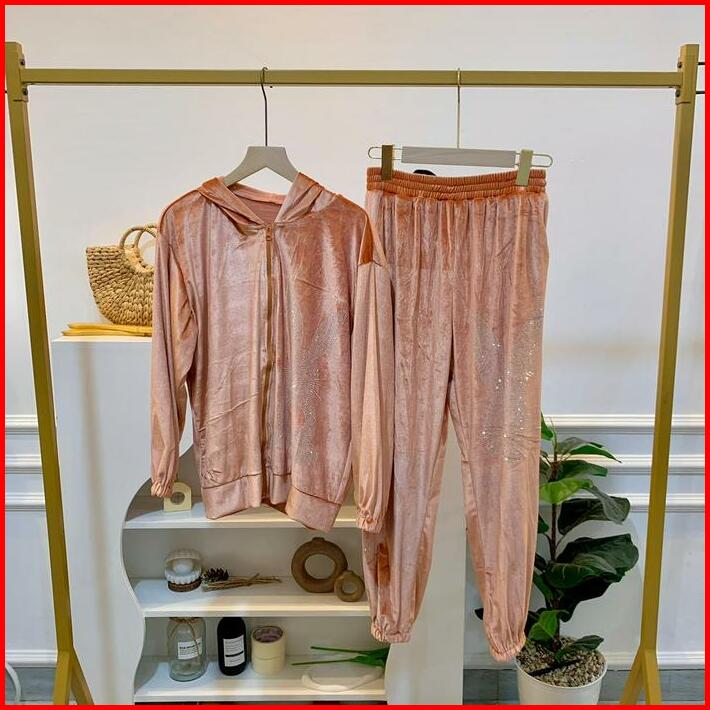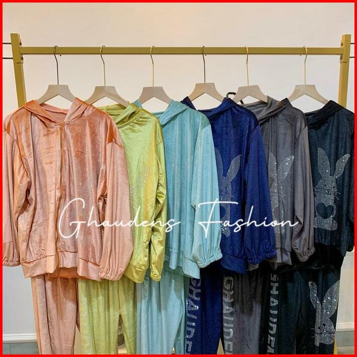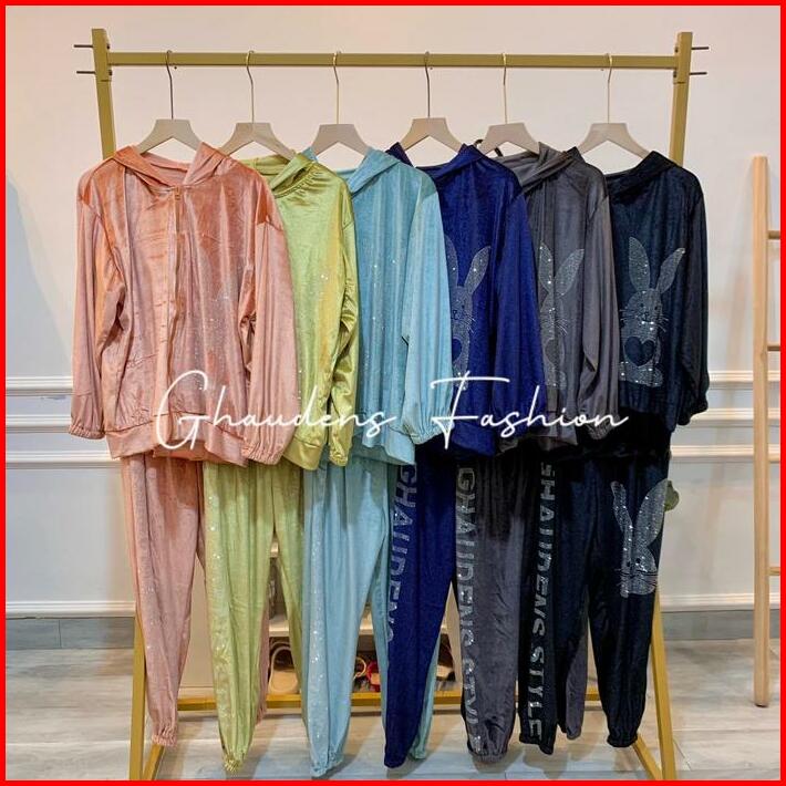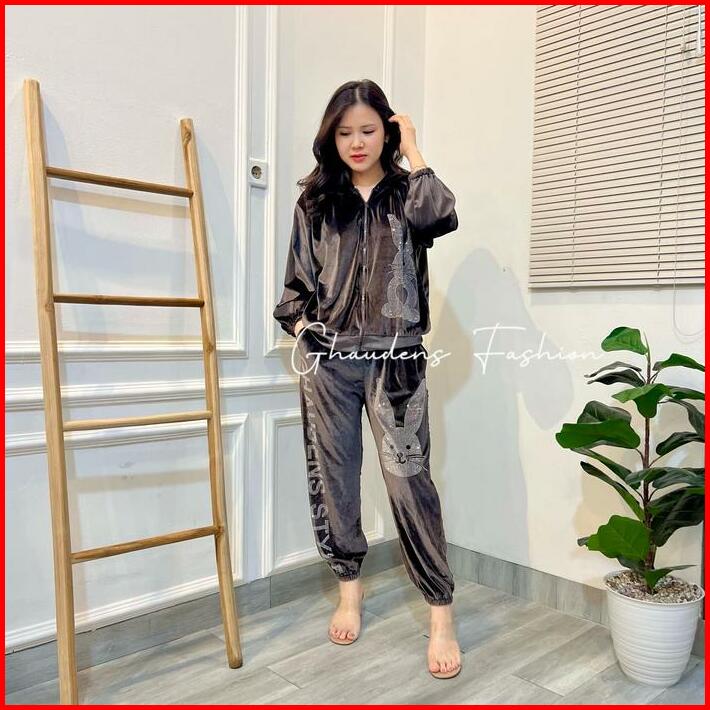 Setelan Bunny Hoodie Velvet Setelan Bludru Wanita