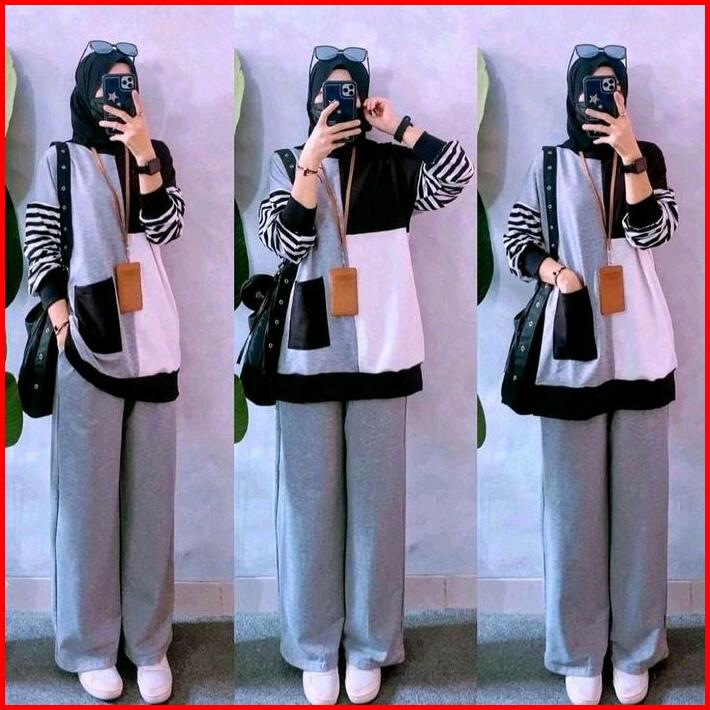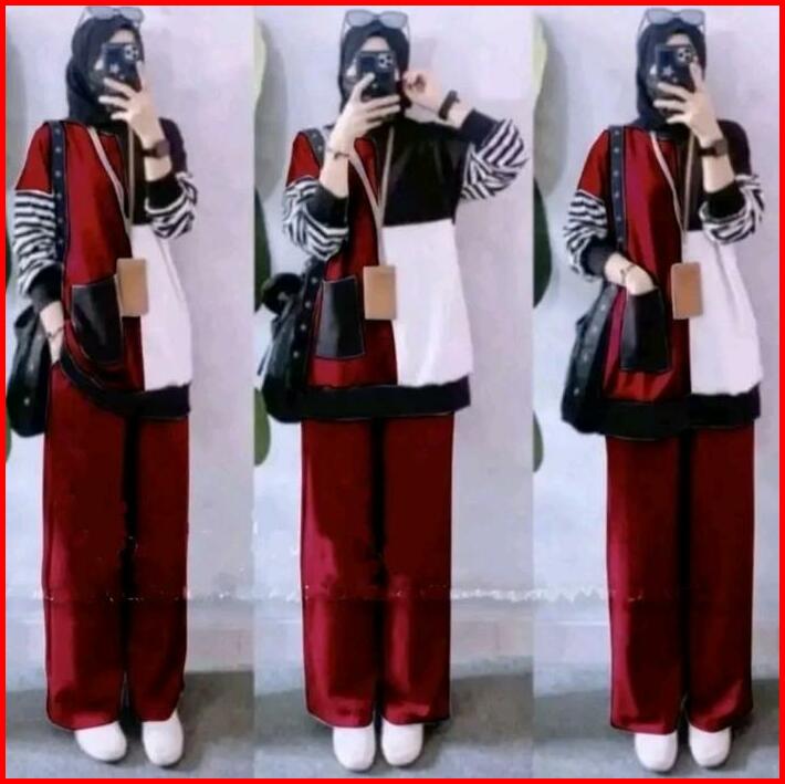 One Set Knit Atasan Bawahan Wanita Kekinian Stelan Baju Muslim Nyaman Panjang Setelan Daily Zolla Std 28 Set Purple Wood