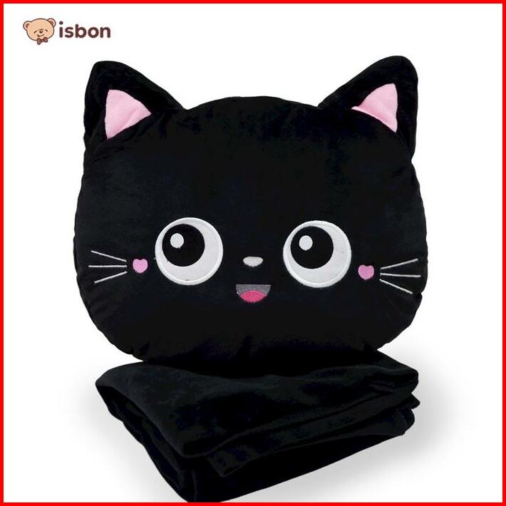 Balmut Bantal Selimut Kucing Hitam Mono Cocok Untuk Traveling Mudah Dibawa Bahan Halus Istana Boneka