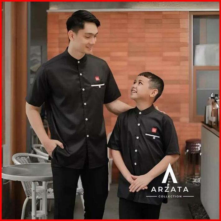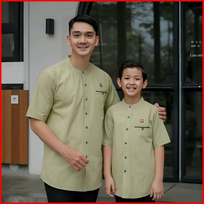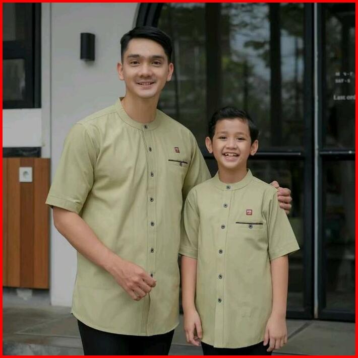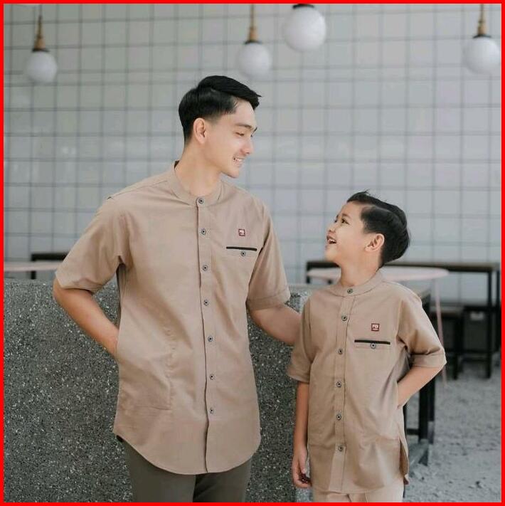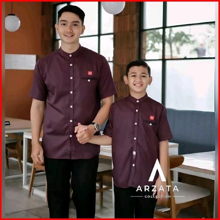 Baju Koko Couple Ayah Anak Lengan Pendek Bahan Katun Toyobo Muslim Nyaman Burgundy