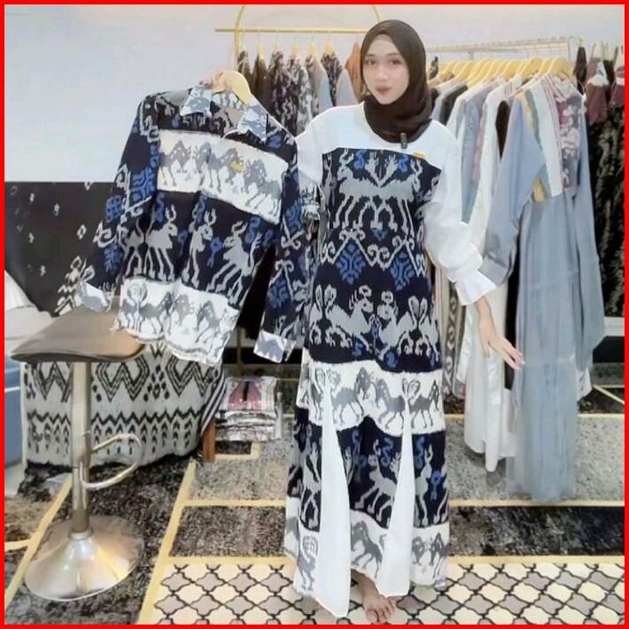 Baju Tenun Couple Dress Gamis Premium Dress Wanita Kekinian