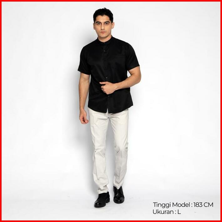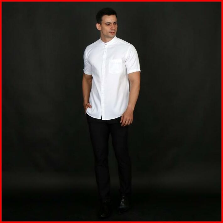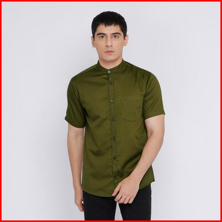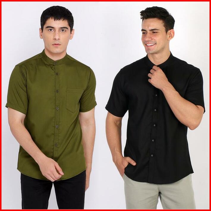 Simple Perfect Baju Koko Pria Dewasa Lengan Pendek Kerah Shanghai Solid Basic Kemeja Koko Polos Muslim Basic