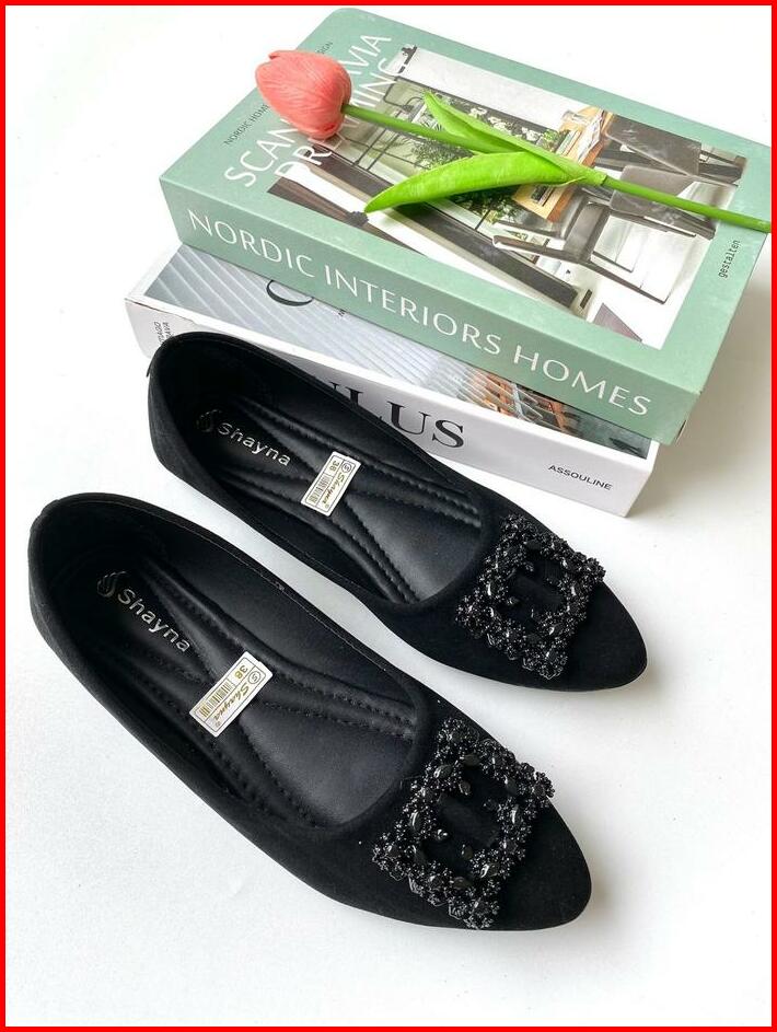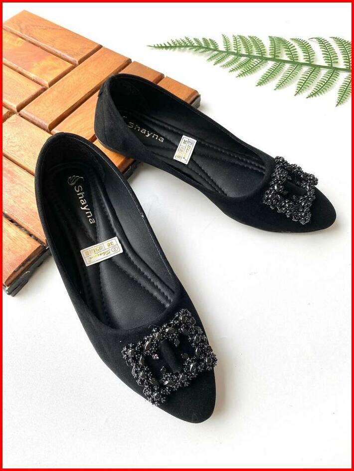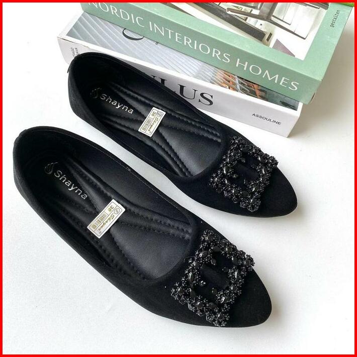 Sepatu Balet Wanita Terbaru Flatshoes Besi Kotak Simple Unik Lucu Sepatu Kerja Sol Karet Sepatu Hitam Wanita Kerja Flat