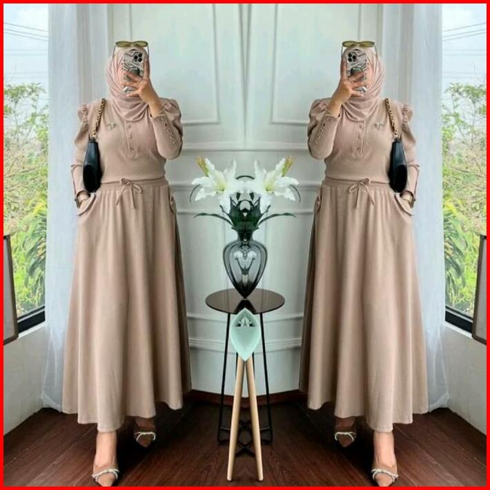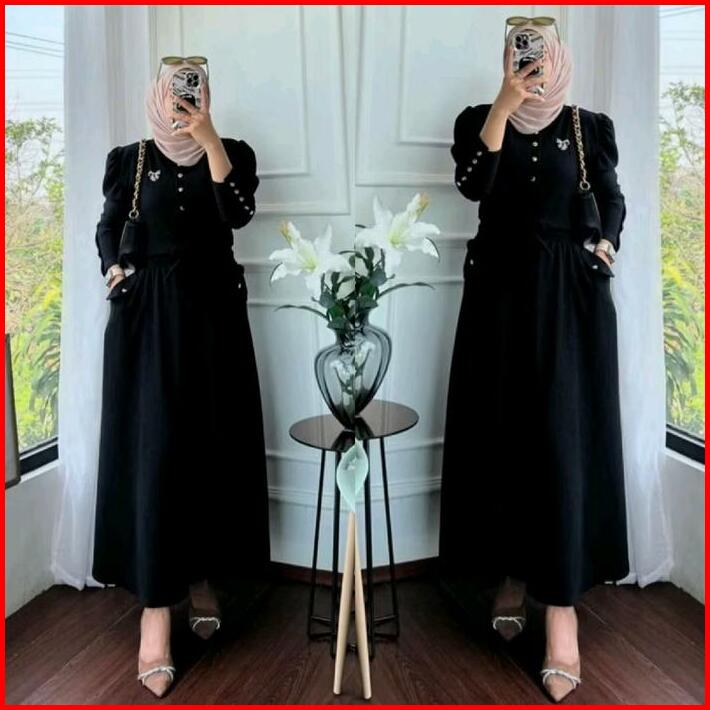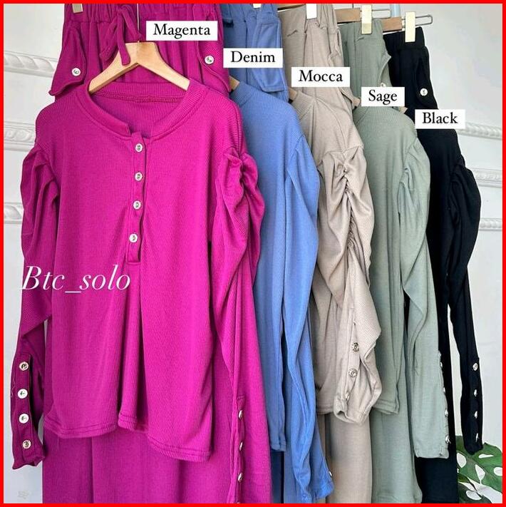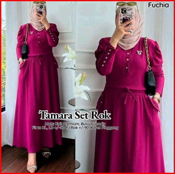 Setelan Tamara Premium Eksklusif One Set Wanita Muslimah Dengan Atasan Dan Celana Rib Knit