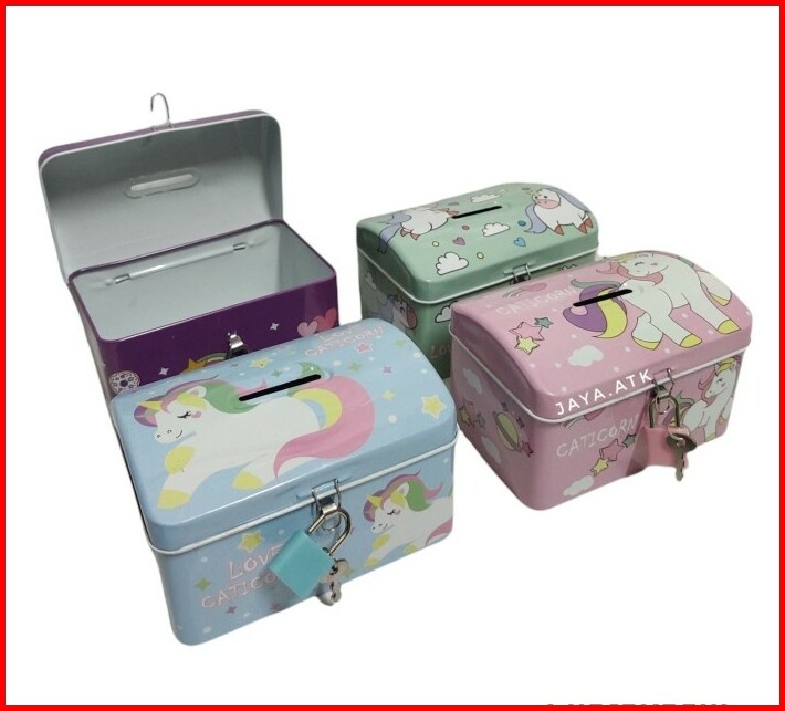Celengan Kaleng Kunci Gembok Souvenir Celengan Anak Lucu Unicorn 872