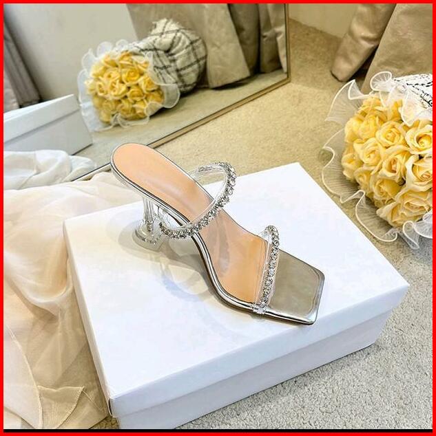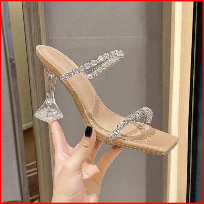 Dcollection High Heels Pesta Wanita Hak Kaca 7 Cm Rhinestones Import
