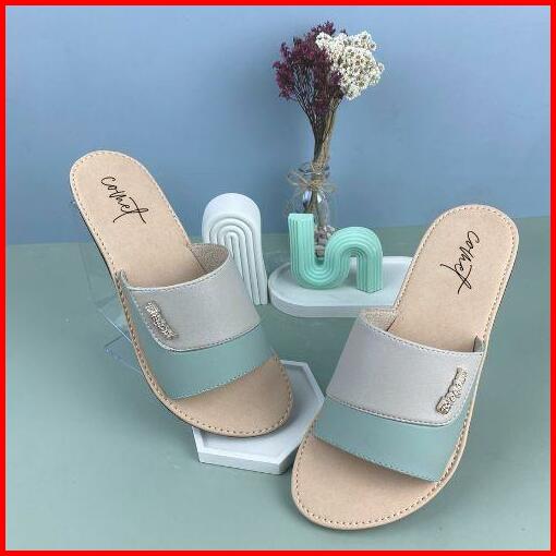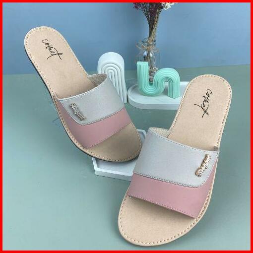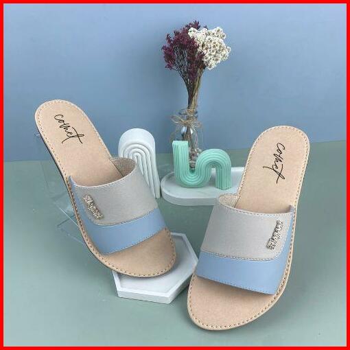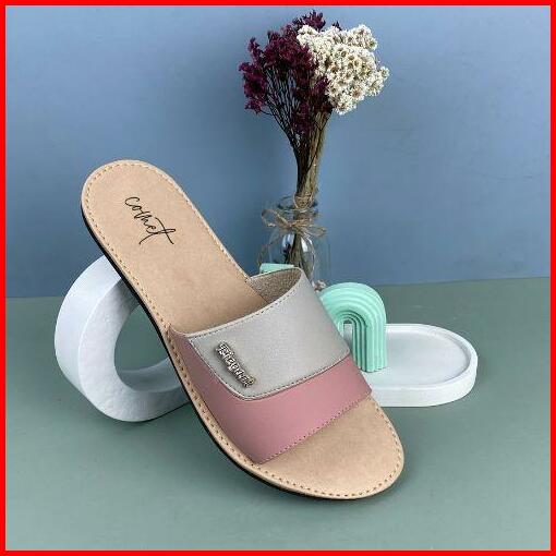 Comet Sendal Wanita Slop Lillye Kokop Flat Shoes Teplek Motif Kombinasi Flat Shoes Elegan Karet Sandal Cewek Terbaru