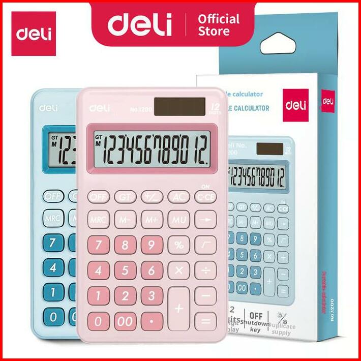 Deli Desktop Calculator Kalkulator Meja Mini Portable Dual Power Lucu 1200