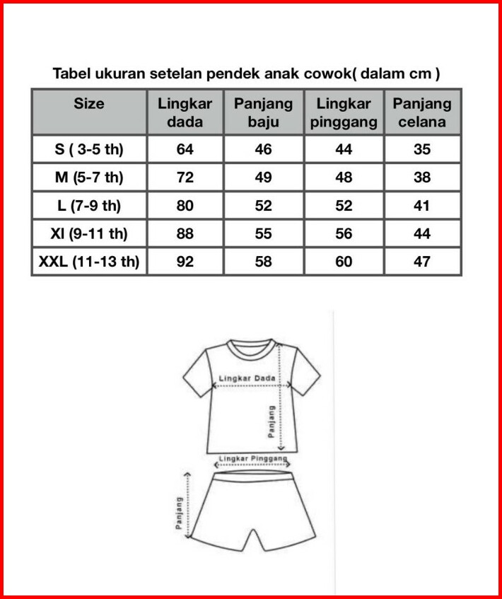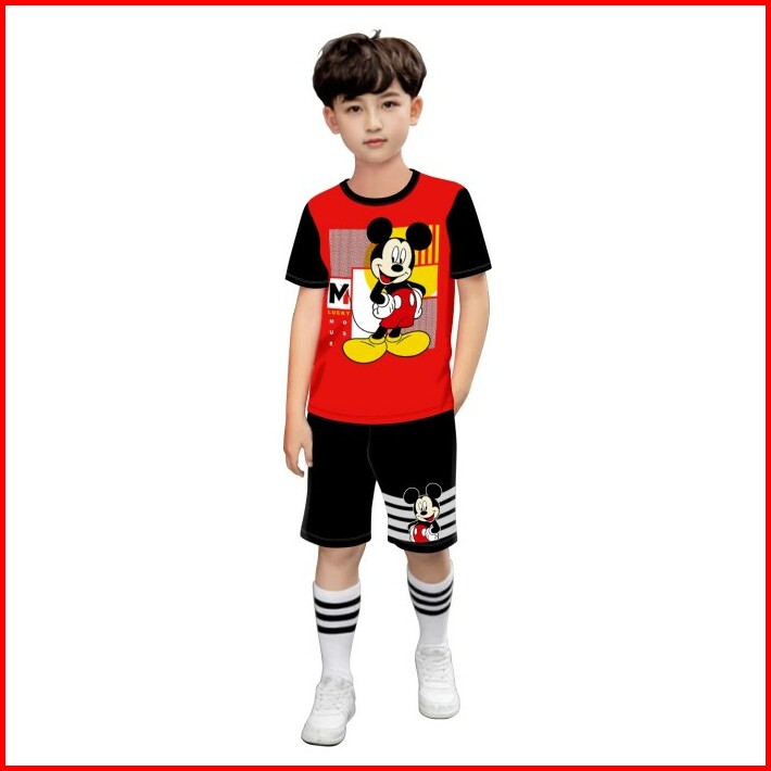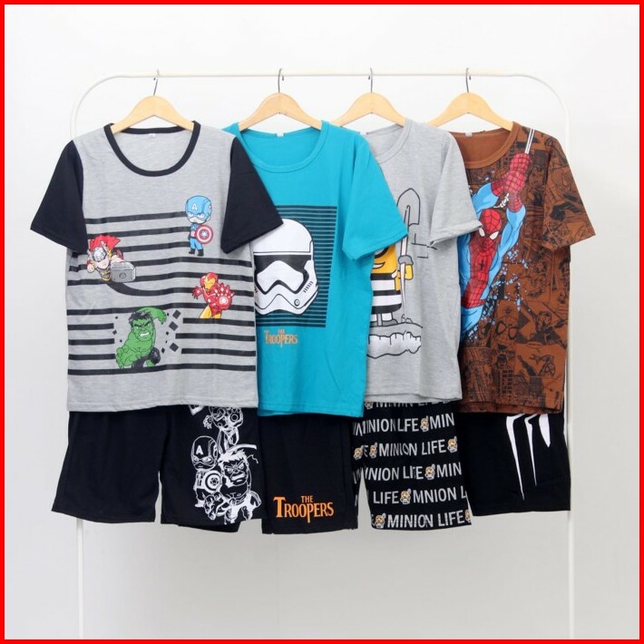 Baju Setelan Kaos Anak Laki-laki Celana Pendek 3-12 Tahun