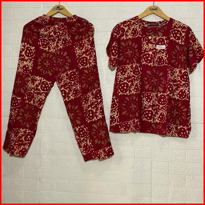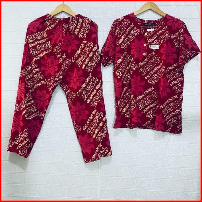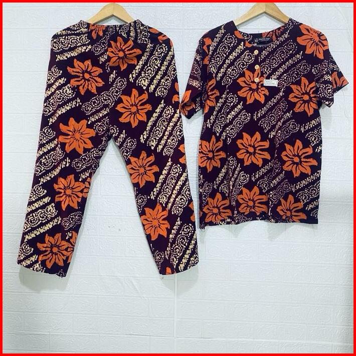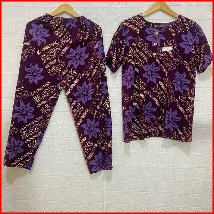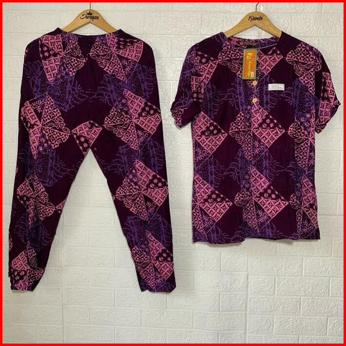 Setelan Wanita Cp Bobok Ld 105 Kencana Ungu Label Coklat Busui Kancing Celana Panjang Dengan Lengan Pendek