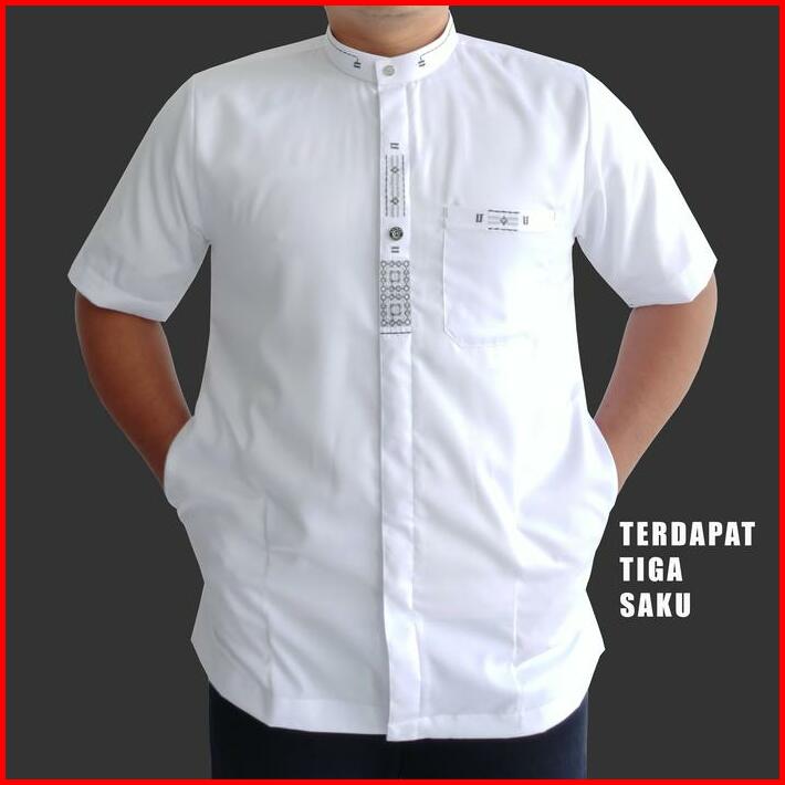 Baju Koko Putih Lengan Pendek Size M L Xl Xxl Kemko Bordir Simpel Pria Dewas Bahan Toyobo