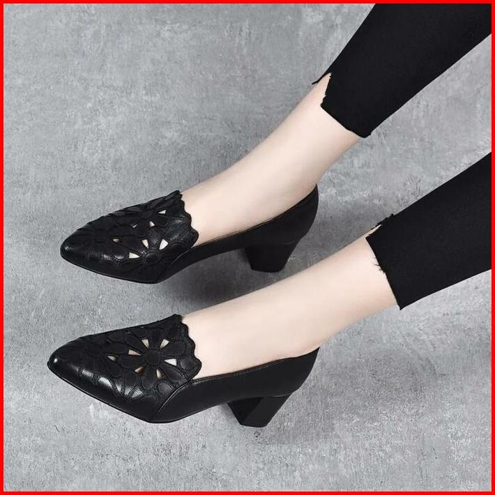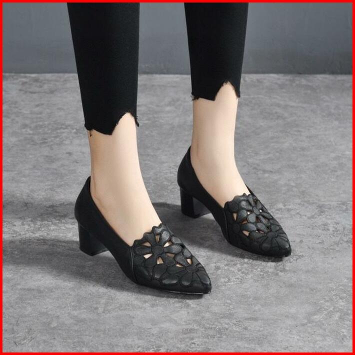 Sepatu Heels Wanita Hak Tinggi Kerja Simple Trendy Korea Style Terbaru Nyaman Shoes Hitam Coklat Pansus Elegan Heels Hak