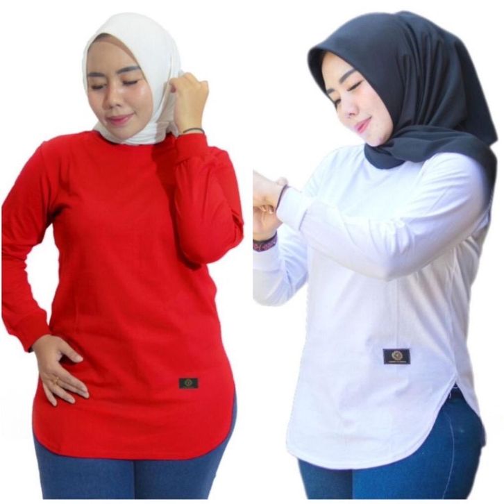 ( MERAH - PUTIH ) Atasan Wanita 17 Agustus Kaos Polos Wanita Lengan Panjang Pakaian Wanita Oval Ukuran M L XL XXL Bahan