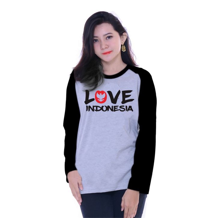 Kaos Raglan Gambar Love Indonesia | Lengan Panjang | Atasan Wanita | Ukuran M - L - XL -XXL