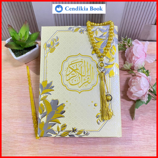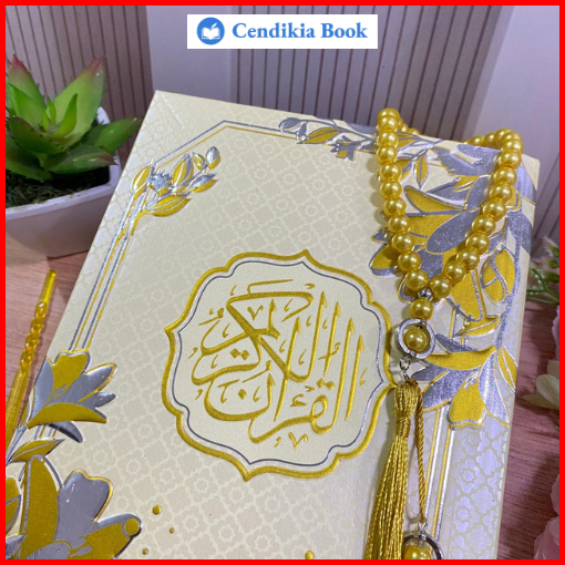 Al-quran Wakaf 3d Hot Stamp Motif Bunga Cantik Emboss Flower Krem Free Tasbih Mutiara 33 Butir - Cendikia Book